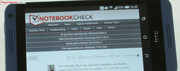 Die maximale Luminanz von 339 cd/m² reicht generell aus für einen Außengebrauch. Sobald jedoch Fremdlicht direkt auf das stark spiegelnde Display strahlt, ist nicht mehr viel zu sehen. Vermeidet man dies, ist eine Nutzung im Freien uneingeschränkt möglich.