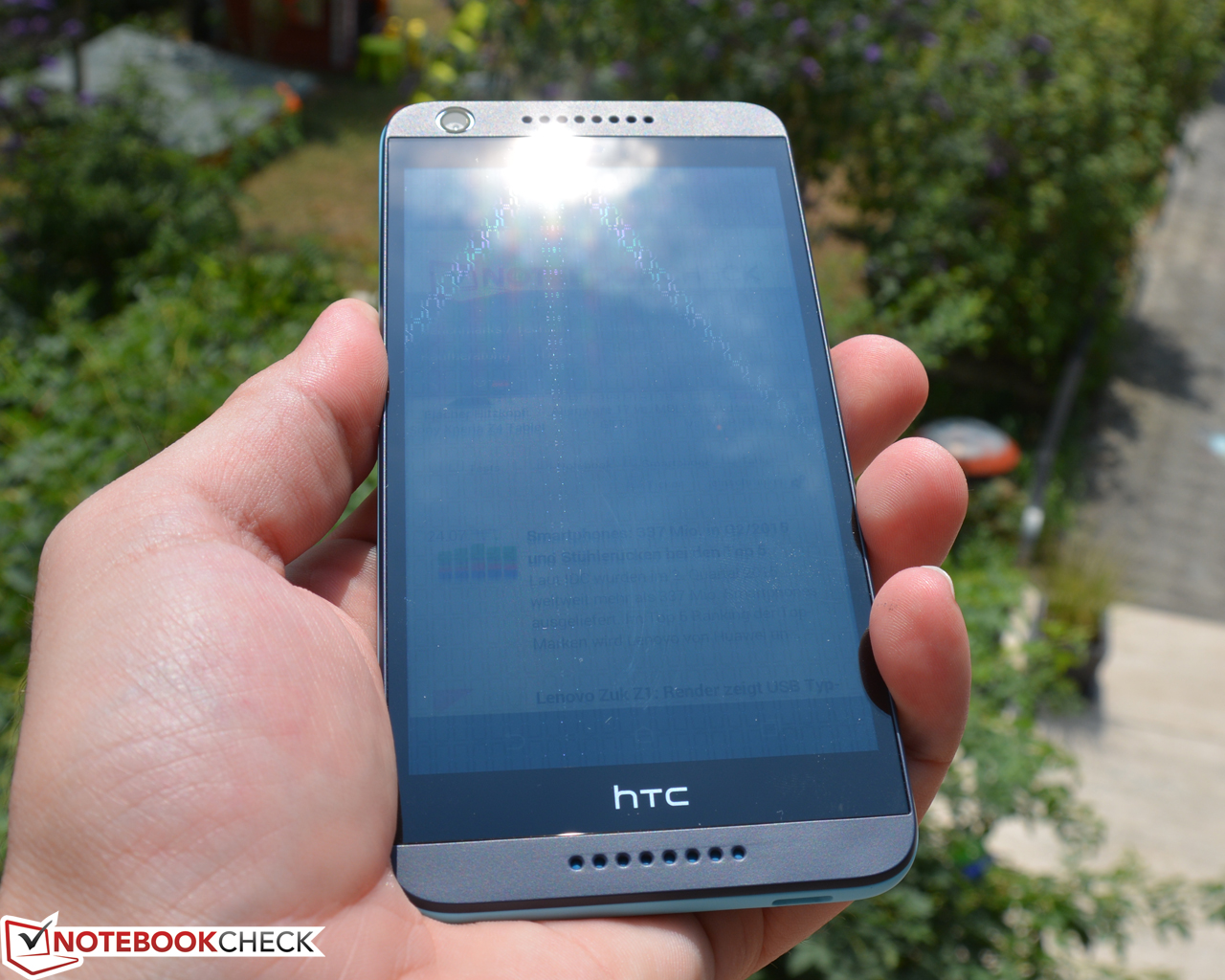 Aufgrund der hohen Luminanz eignet sich das Desire 626G dual sim recht gut für den Außengebrauch. Fällt jedoch direktes Sonnenlicht auf das Display, treten wie bei den meisten aktuellen Smartphones auch starke Spiegelungen auf, die die Ablesbarkeit draußen etwas einschränken.