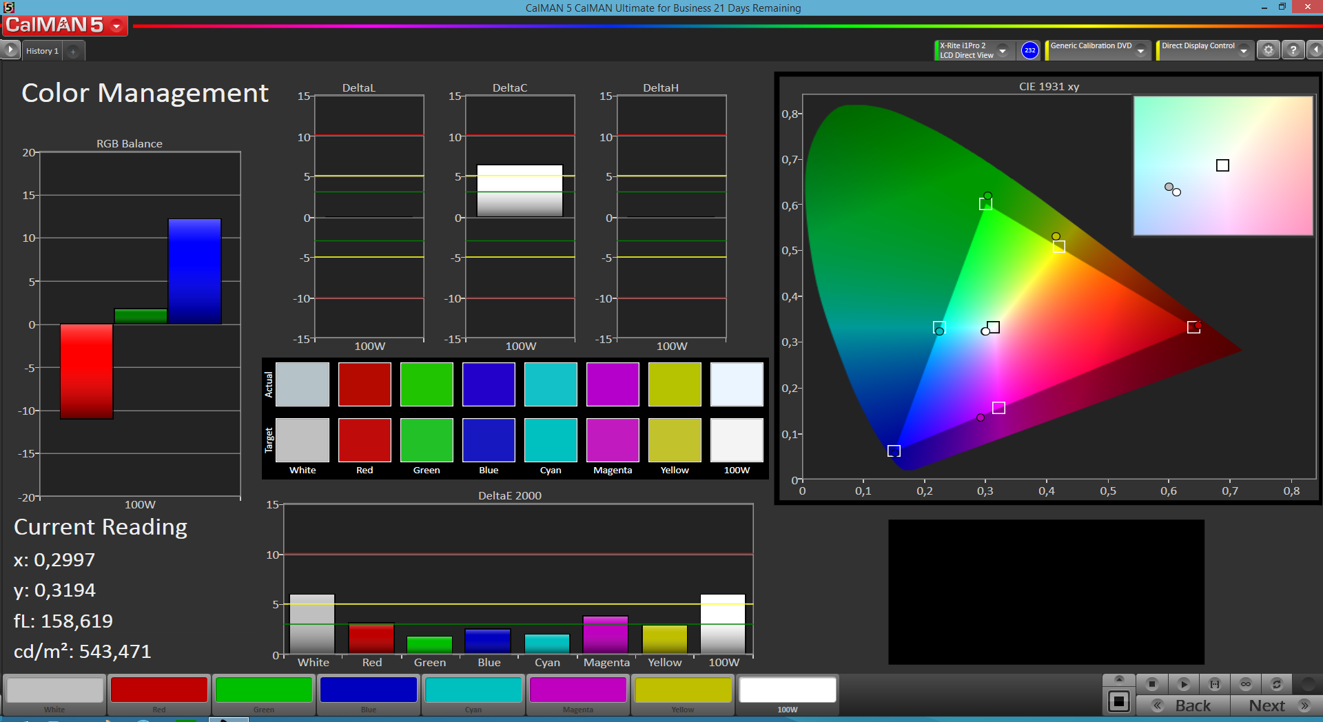 | Delta E Colorchecker * | 5.85 | 5.72 2% | 6.07 -4% | 5.73 2% | 2.6 56% |