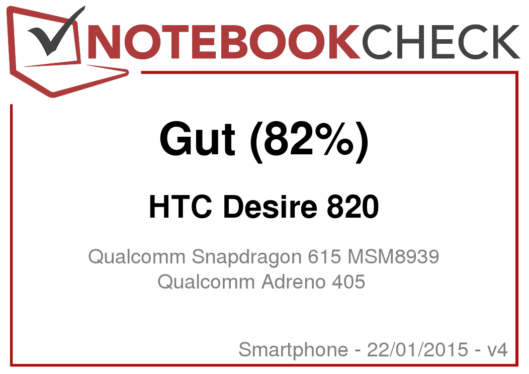 Das HTC Desire 820 ist eines der ersten Smartphones mit dem neuen Qualcomm Snapdragon 615 SoC. Dieser unterstützt nicht nur 64 Bit, sondern bietet acht Prozessorkerne. Dabei handelt es sich nicht um einen echten Octa-Core, sondern um einen Verbund von acht Cortex-A53-Kernen, welche sich aus zwei 4-Kern-Clustern zusammensetzen. Um Energie zu sparen, taktet der eine Cluster mit bis zu 1,54 GHz und der andere mit bis zu 1,0 GHz, ähnlich wie im big.LITTLE-Konzept von ARM.