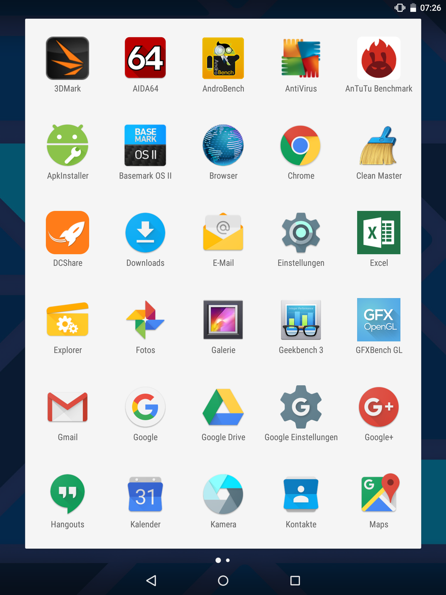 | Haier Pad 971 Mali-T760 MP4, RK3288, 16 GB eMMC Flash | Amazon Fire HD 10 inch 2015 PowerVR G6200, MT8135, 16 GB eMMC Flash | Xiaomi MiPad 2 HD Graphics (Cherry Trail), Z8500, 16 GB eMMC Flash | Lenovo Yoga Tab 3 YT3-X50F Adreno 304, 212 APQ8009, 16 GB eMMC Flash | Lenovo TAB2 A10-70 Mali-T760 MP2, MT8165, 16 GB eMMC Flash | Apple iPad Air 2 2014 PowerVR GXA6850, A8X, 128 GB eMMC Flash | |