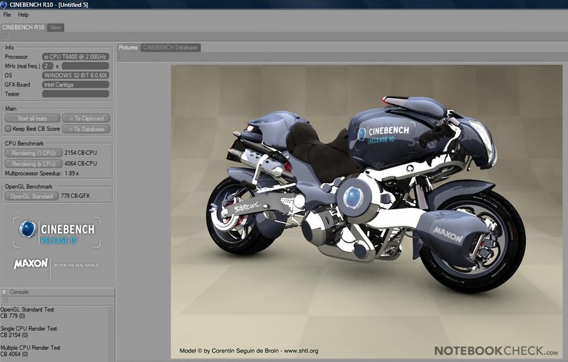 Bei den synthetischen Anwendungsbenchmarks erzielt das Mobile.ForceM13.S1 schon mit T6400 „gute“ Leistungen. Im Test mit Maxons Cinebench R10 „Rendering Single“ (ein Rechenkern) schafft das Mobile.ForceM13.S1 immerhin 2154 CB-CPU. Bei „Rendering Multiple CPUs“ erreicht das Subnotebook von Hawkforce 4064 CB-CPU. Auch den Anwendungsbenchmark PCMark05 meistert das Subnotebook mit 4479 Punkten und einem „Rating“ von 81,4 Prozent („gut“) souverän. Im aktuelleren PCMark Vantage schlägt sich das Mobile.ForceM13.S1 mit 3053 Punkten (82,2 Prozent) sogar noch einen Tick besser.