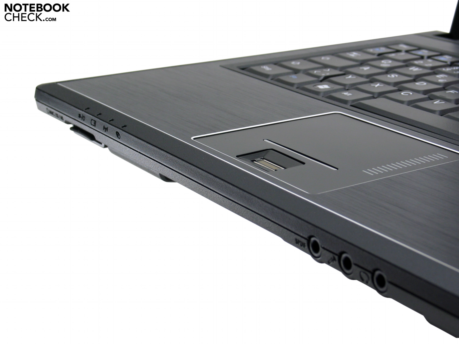 Bei der Anschlussausstattung gibt es am Hawkforce Mobile.ForceM13.S1 keine Überraschungen zu vermelden. Das Subnotebook verfügt über drei USB-2.0-Ports, einen ExpressCard/54-Slot sowie einen Kartenleser für Flashspeicher (MMC, MS, MS Pro, SD). Zudem gehören natürlich die Audio-Ports und ein VGA-Ausgang zur Pflichtausstattung. Als Besonderheit hat das Hawkforce Mobile.ForceM13.S1 einen Fingerabdruckleser an Bord, mit dem sich der Anwender nach Einrichtung quasi per Fingerabdruck am Windows-Desktop anmelden kann.