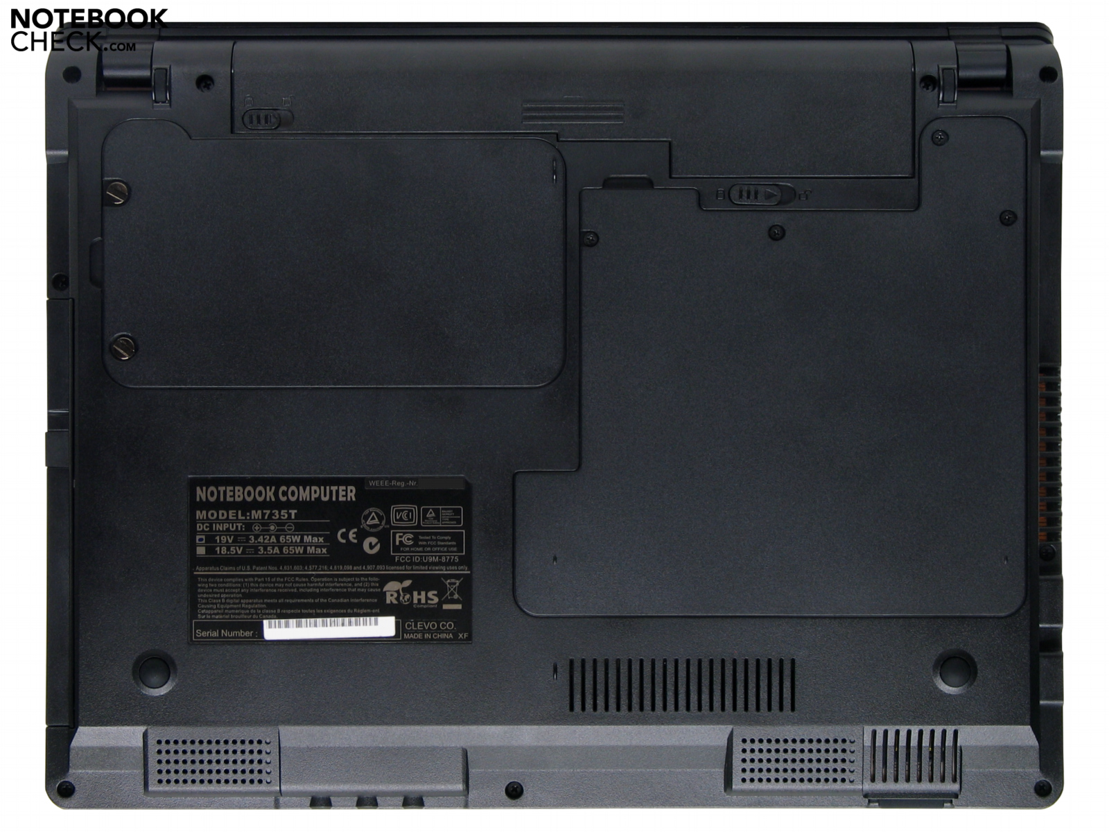 Ansonsten präsentiert sich das Chassis des Hawkforce Mobile.ForceM13.S1 verwindungssteif. Auch bei der Passgenauigkeit und der Verarbeitungsqualität haben wir am Mobile.ForceM13.S1 nichts zu mäkeln. Gelungen: Das Mobile.ForceM13.S1 verfügt an der Geräteunterseite über zwei große Wartungsdeckel für den problemlosen Zugang zu Festplatte, Hauptspeicher und den Zusatzmodulen. Besonderer Clou: Der Gehäuselüfter ist am großen Wartungsdeckel montiert und lässt sich daher beim Abschrauben der Klappe kinderleicht von Staub befreien.