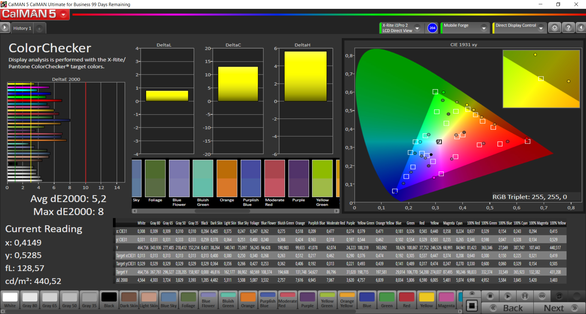 ΔE ColorChecker Calman: 5.2 | ∀{0.5-29.43 Ø4.78}