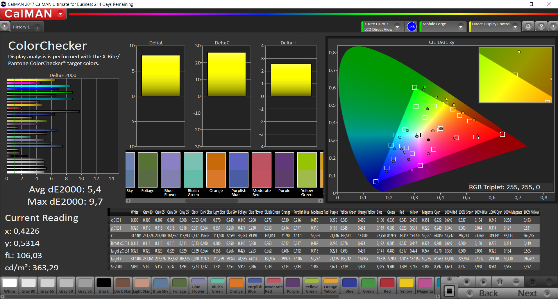 ΔE ColorChecker Calman: 5.4 | ∀{0.5-29.43 Ø4.78}