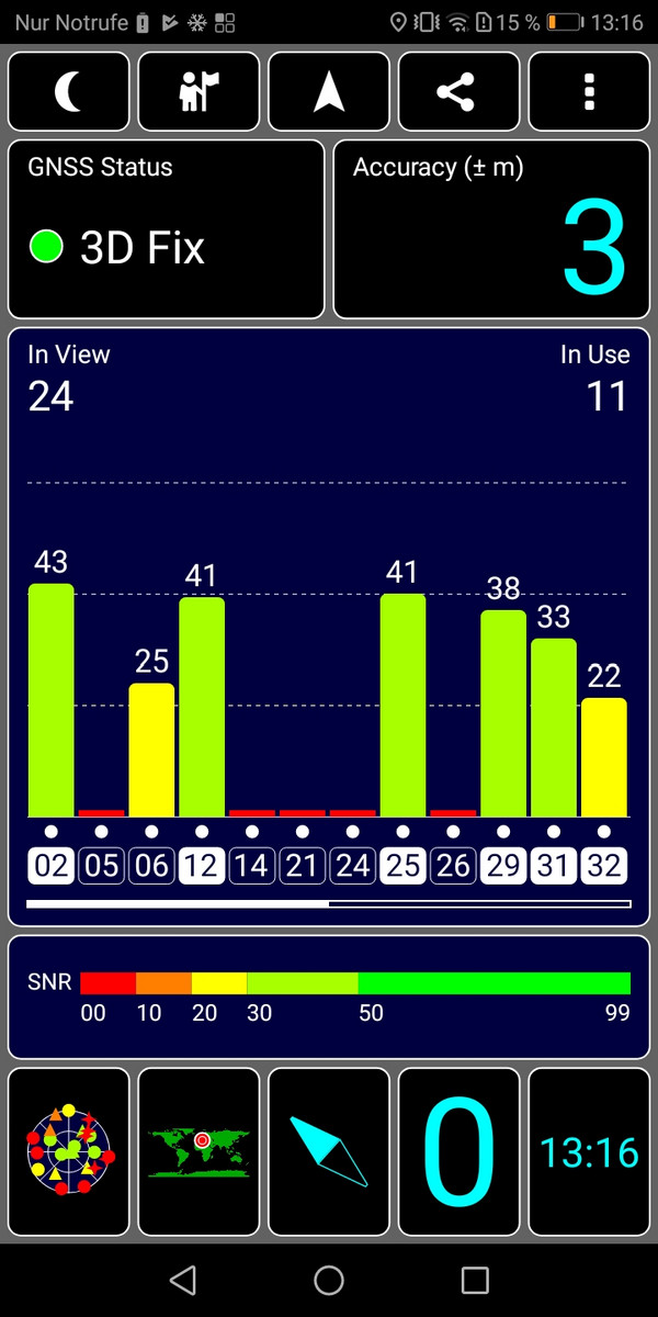 In Innenräumen kann uns das GPS-Modul im Honor 7C nicht orten, sobald wir jedoch ins Freie treten, werden wir sofort auf 3 Meter genau platziert.