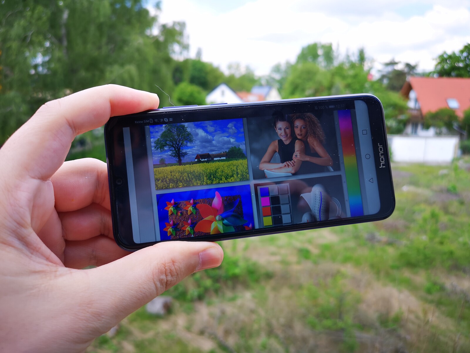 Wegen der höheren Bildhelligkeit tut sich das neue Honor 8A im Freien weniger schwer als der Vorgänger, wenn es um die Ablesbarkeit bei hellem Umgebungslicht geht. Die Blickwinkelabhängigkeit fällt ansonsten sehr gut aus, lediglich leichte Abschattung ist bei sehr flachen Blickwinkeln zu beobachten.