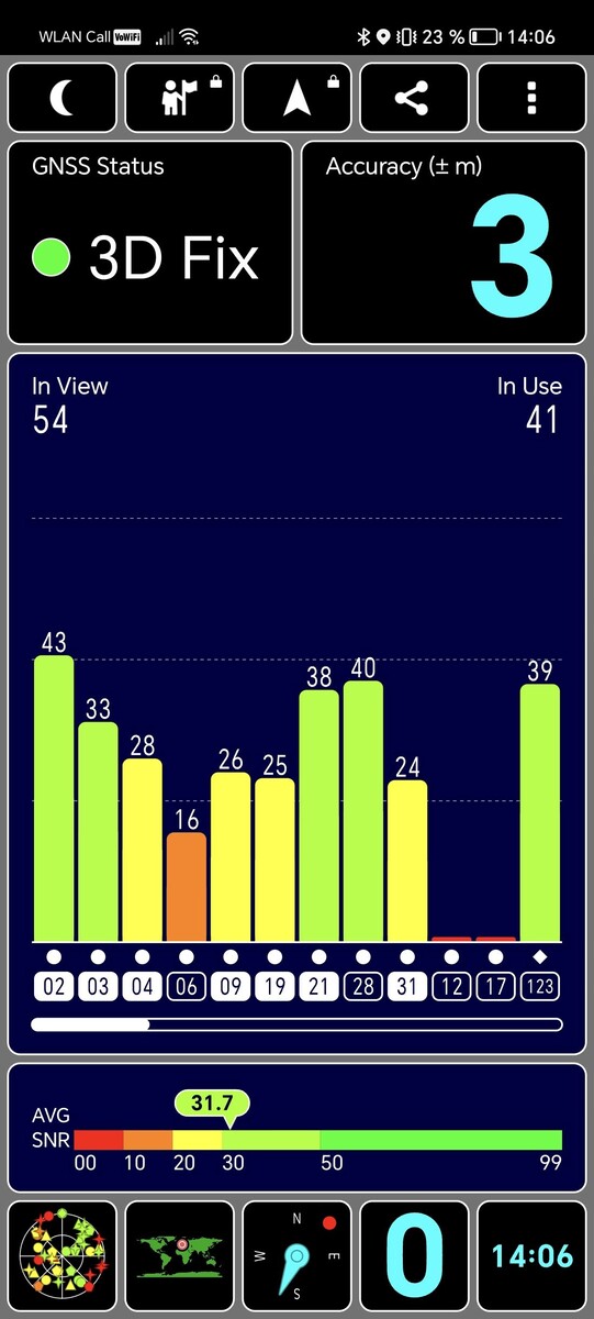 Bei der Satellitenverbindung hinterlässt das Honor 90 einen guten Einblick. Obwohl das Gerät nur eine Single-GNSS-Verbindung aufbaut, überzeugt es mit einer stabilen und zuverlässigen Ortung. Es unterstützt alle gängigen Satellitensysteme.