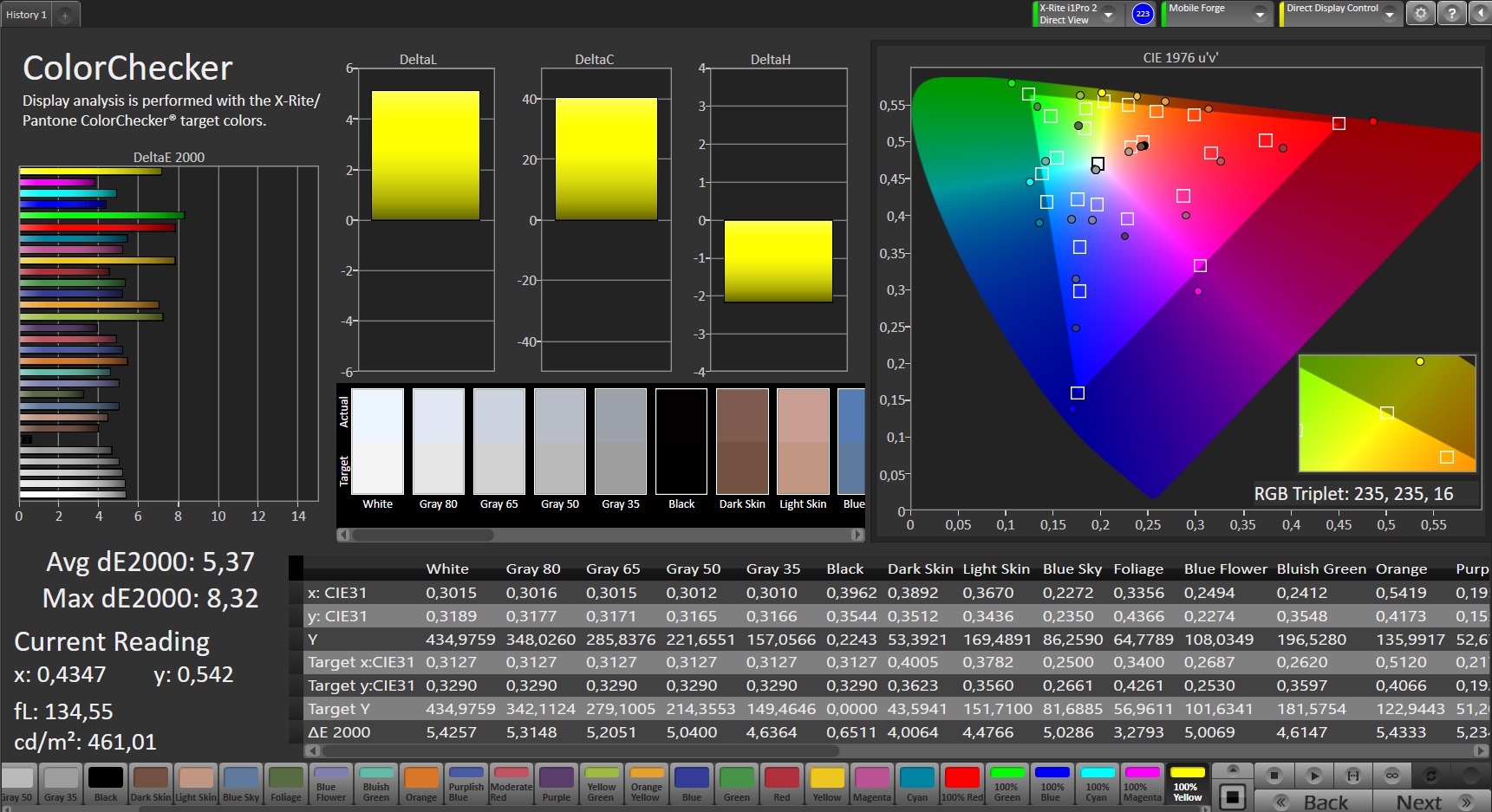 | Delta E Colorchecker * | 5.37 | 2.3 57% | 1 81% | 2.1 61% | 3.8 29% |