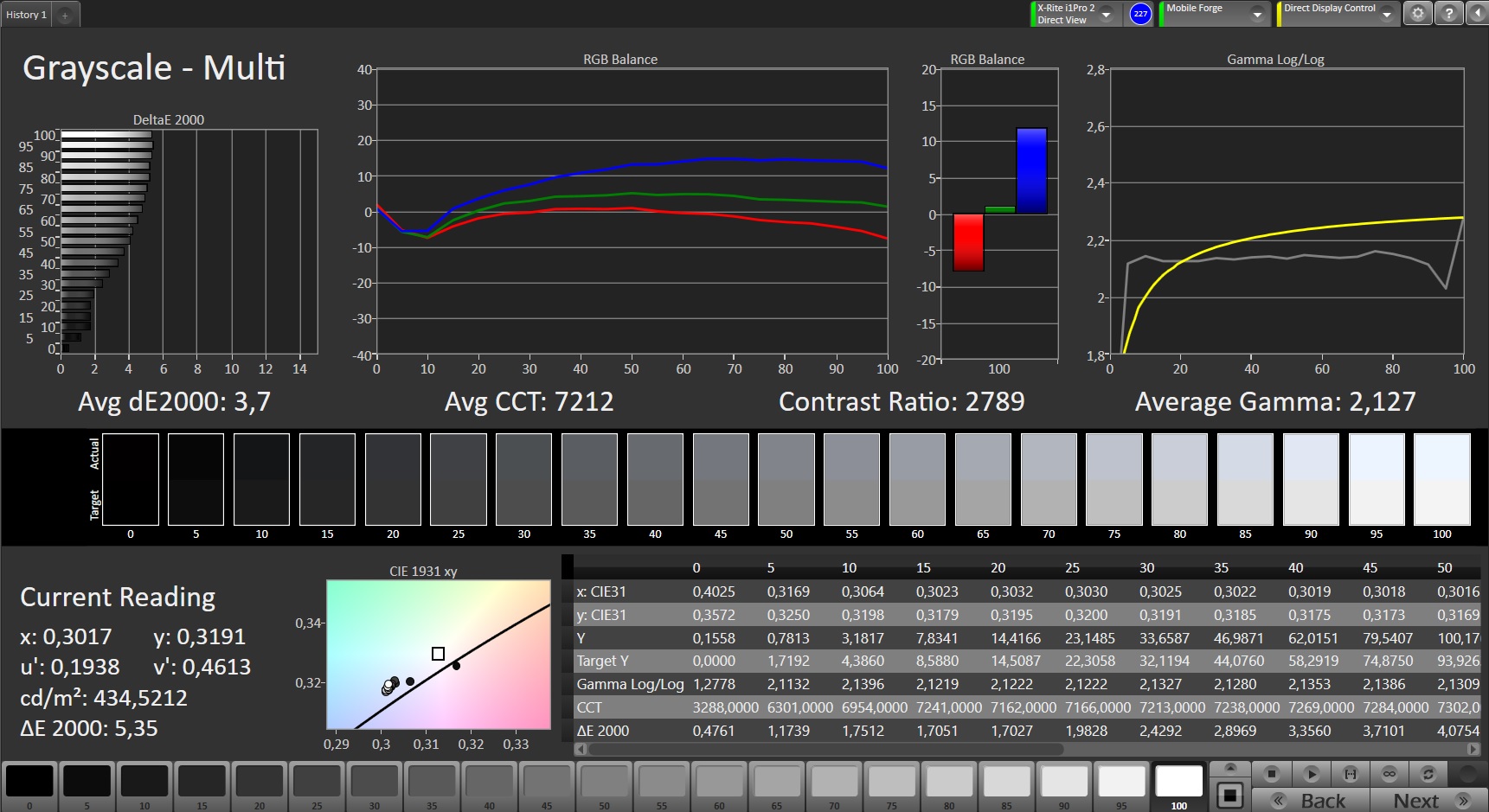 ΔE Greyscale Calman: 3.7 | ∀{0.09-98 Ø5}