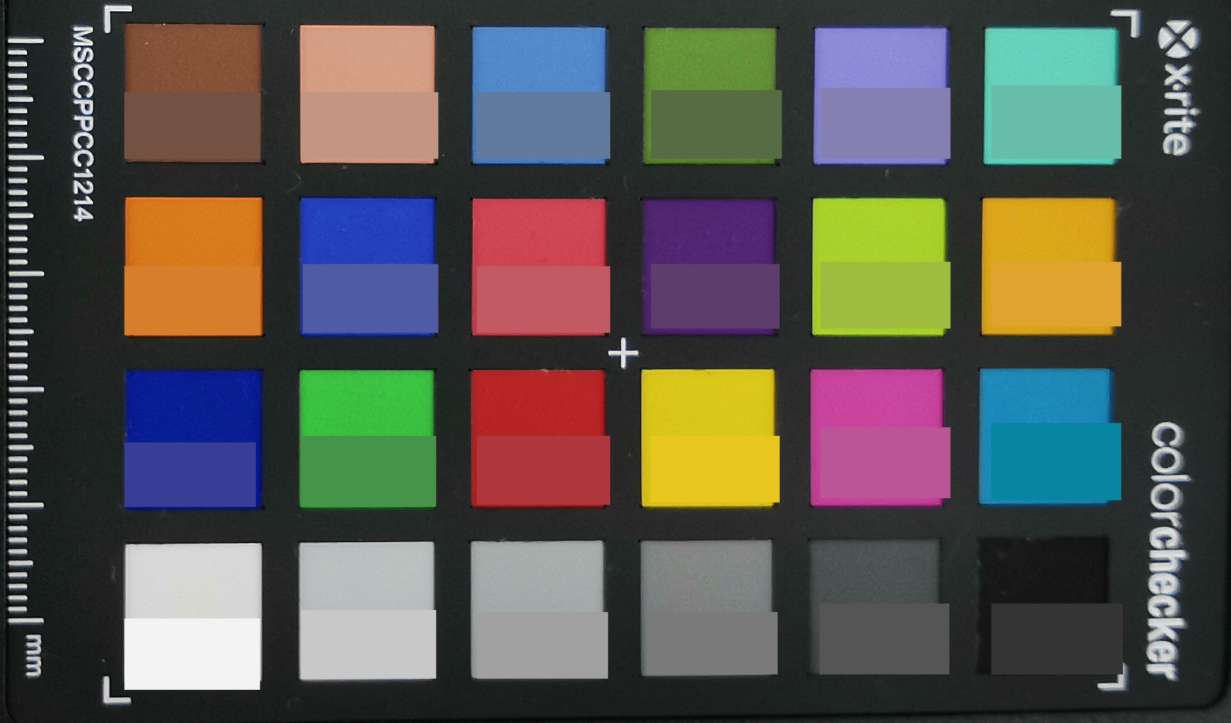 Szene 1Szene 2Szene 3In der Aufnahme des ColorChecker-Passport-Fotos liegt zum Vergleich über jedem Farbfeld jeweils der Farbton im Original. Auffällige Abweichungen gibt es nicht, im Gegenteil: Insbesondere im Bereich der warmen Farbtöne ist eine auffallend gute Übereinstimmung erkennbar. Das Testchart - die Aufnahmen unten zeigen es einmal im Detail, einmal im Ganzen - würde Schwächen in den Randbereichen aufdecken; auch hier besteht kein Anlass zu Kritik.