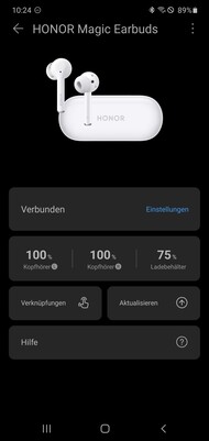 Die Inbetriebnahme der Honor Magic Buds funktioniert sehr einfach und orientiert sich dabei an den AirPods von Apple. Es muss also lediglich das Ladeetui geöffnet werden und das Smartphone erkennt die TWS-Kopfhörer direkt. Dies funktioniert jedoch nur so komfortabel mit Honor- (ab Magic UI 3.0) oder Huawei-Geräten (ab EMUI 10). Wer ältere Softwareversionen oder ein anderes Smartphone beziehungsweise Tablet mit Android besitzt, sollte zunächst die App AI Life von Huawei installieren, um die Magic Earbuds einfach verbinden und konfigurieren zu können. Ein herkömmliches Koppeln über das Bluetooth-Menü ist ebenfalls zu jeder Zeit möglich. Für diesen Zweck lässt sich das Pairing über eine Taste am Ladeetui initiieren. Dies ist bei der Verwendung mit einem iPhone auch zwingend erforderlich, denn für iOS gibt es bislang keine App.