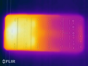 (-) Auf der Unterseite messen wir eine maximalen Wert von 45.6 °C (im Vergleich zum Durchschnitt von 34 °C).