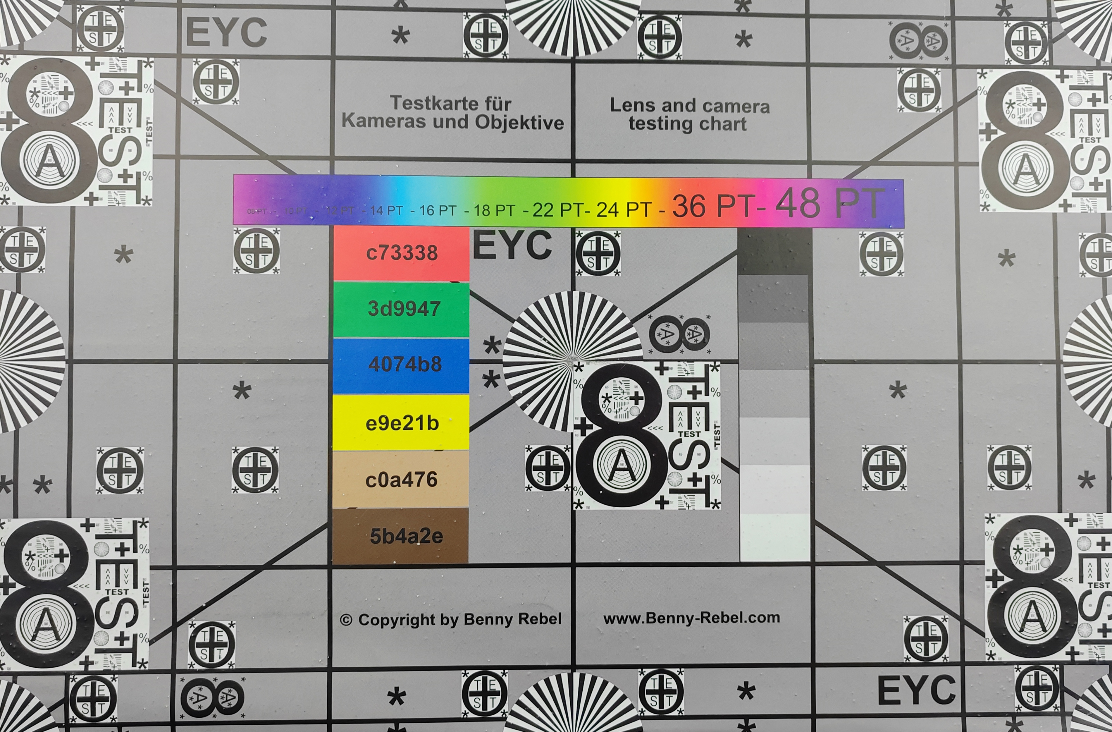 Im Labor zeigt sich die Hauptkamera bei voller Beluchtung sehr scharf, nur bei sehr feinen Strukturen fehlt es etwas an Genauigkeit. Farben werden kräftig dargestellt. Bei nur 1 Lux Beleuchtungsstärke ist das Bild noch gut erkennbar, Kanten werden aber leicht unsauber und bei schwarzem Text vor dunklen Farben fehlt es an Kontrast.