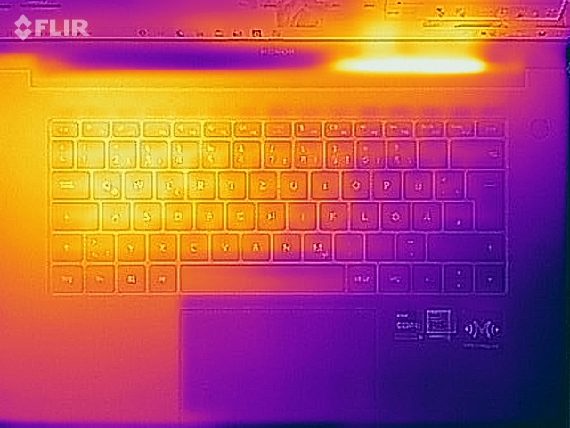 (+) Die Handballen und der Touchpad-Bereich erreichen maximal 32.2 °C und damit die typische Hauttemperatur und fühlen sich daher nicht heiß an.