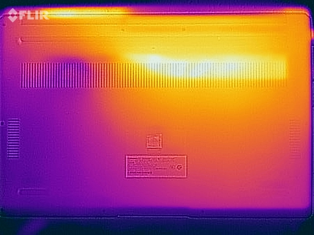 Das Gehäuse erwärmt sich vor allem auf der linken Seite und in der Mitte, aber selbst in unserem Stresstest mit Prime95 und FurMark steigen die Oberflächentemperaturen nur an zwei Stellen knapp über die 40-°C-Marke. Insgesamt bleibt das Metallgehäuse sehr kühl und auch unter Last kann man es problemlos auf den Oberschenkeln abstellen.