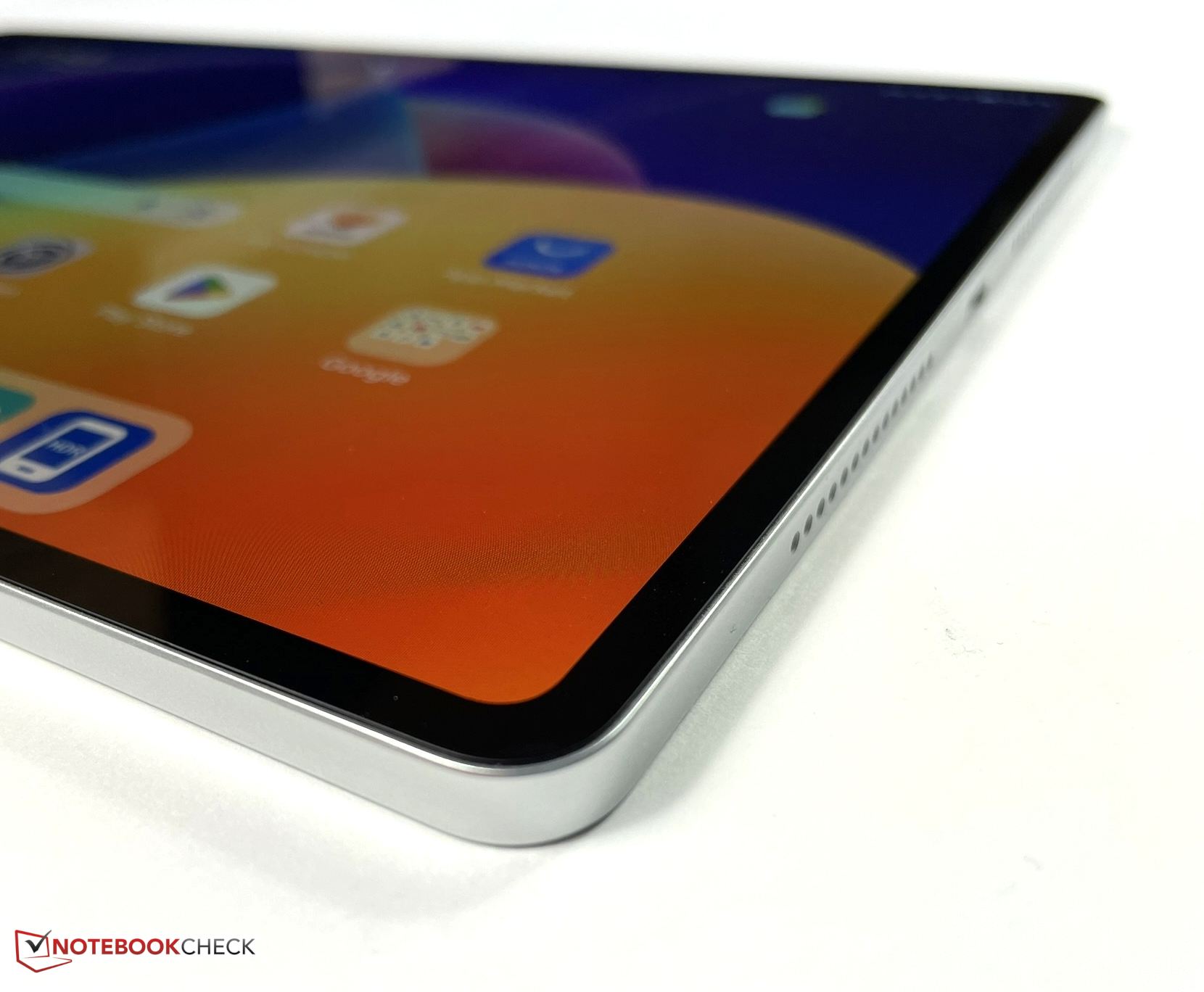 Der schlanke Auftritt wird durch den allseitig etwa 5 Millimeter schmalen Rahmen um das Display unterstrichen, das aus Aluminosilikatglas besteht. Insgesamt macht das Tablet einen hochwertigen Eindruck, auch wenn das matte Backcover nicht wie der übrige Gehäuserahmen aus Aluminium besteht, sondern nur aus Kunststoff. Die Spaltmaße sind enganliegend und gleichmäßig und unsere Verwindungsversuche lassen das Tablet unbeeindruckt. Ein IP-Rating besitzt es allerdings nicht.