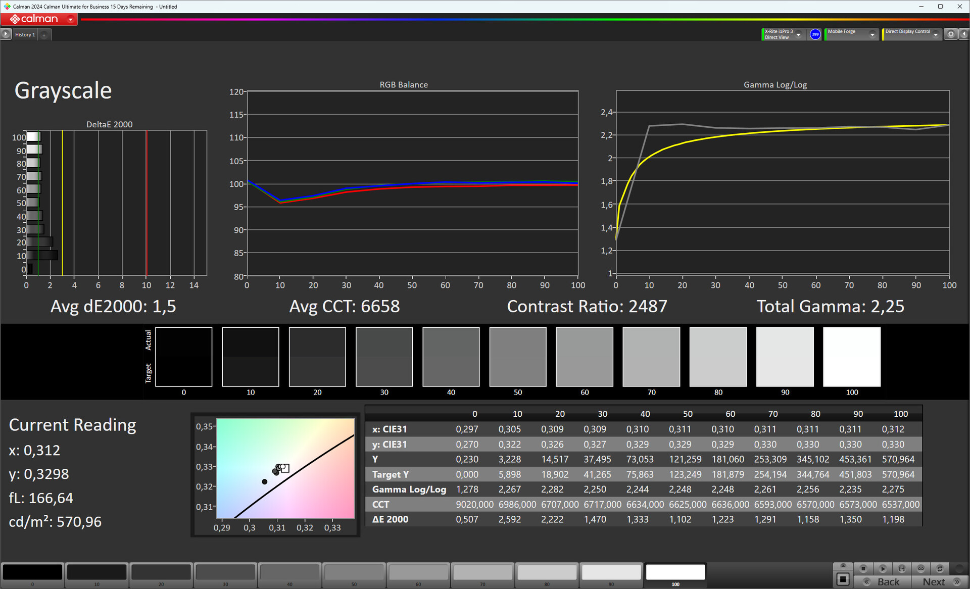 ΔE Greyscale Calman: 1.5 | ∀{0.09-98 Ø5}