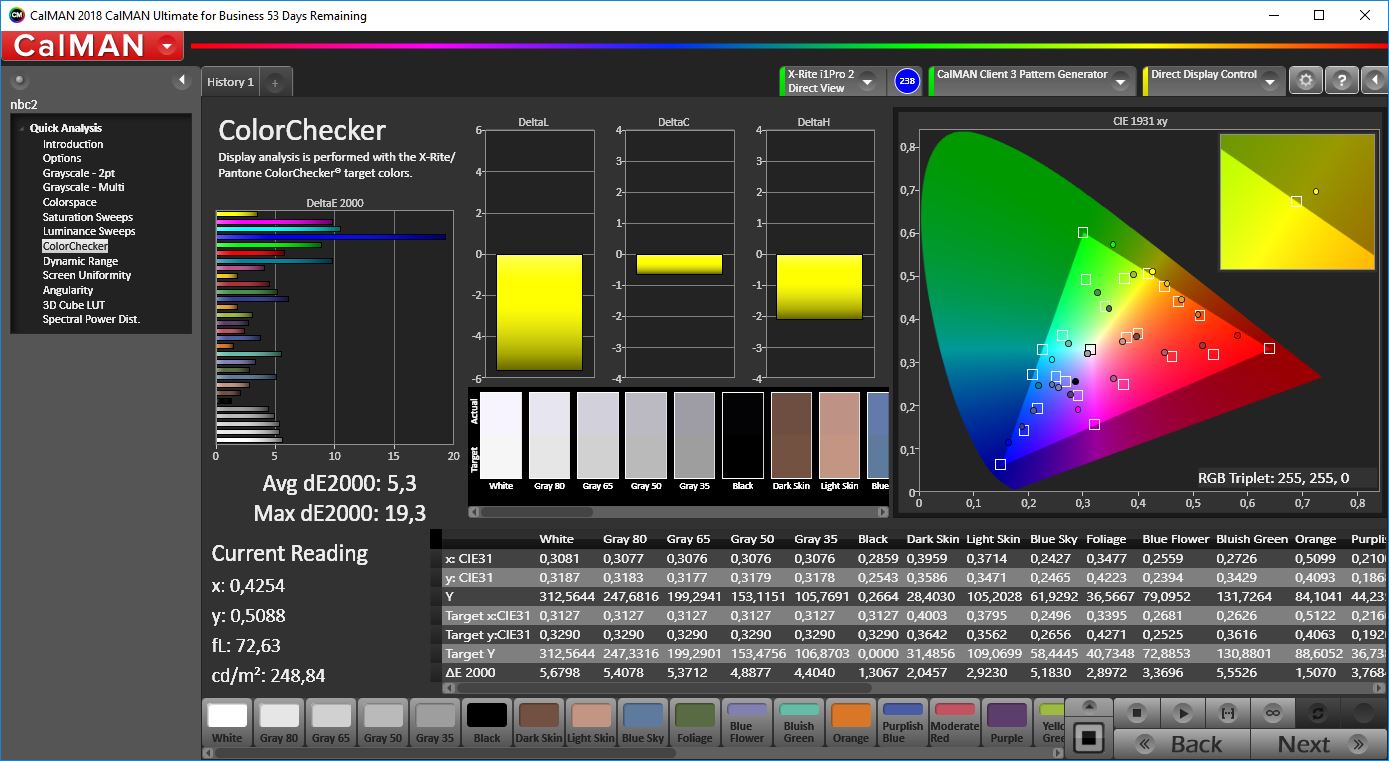 ΔE ColorChecker Calman: 5.3 | ∀{0.5-29.43 Ø4.78}