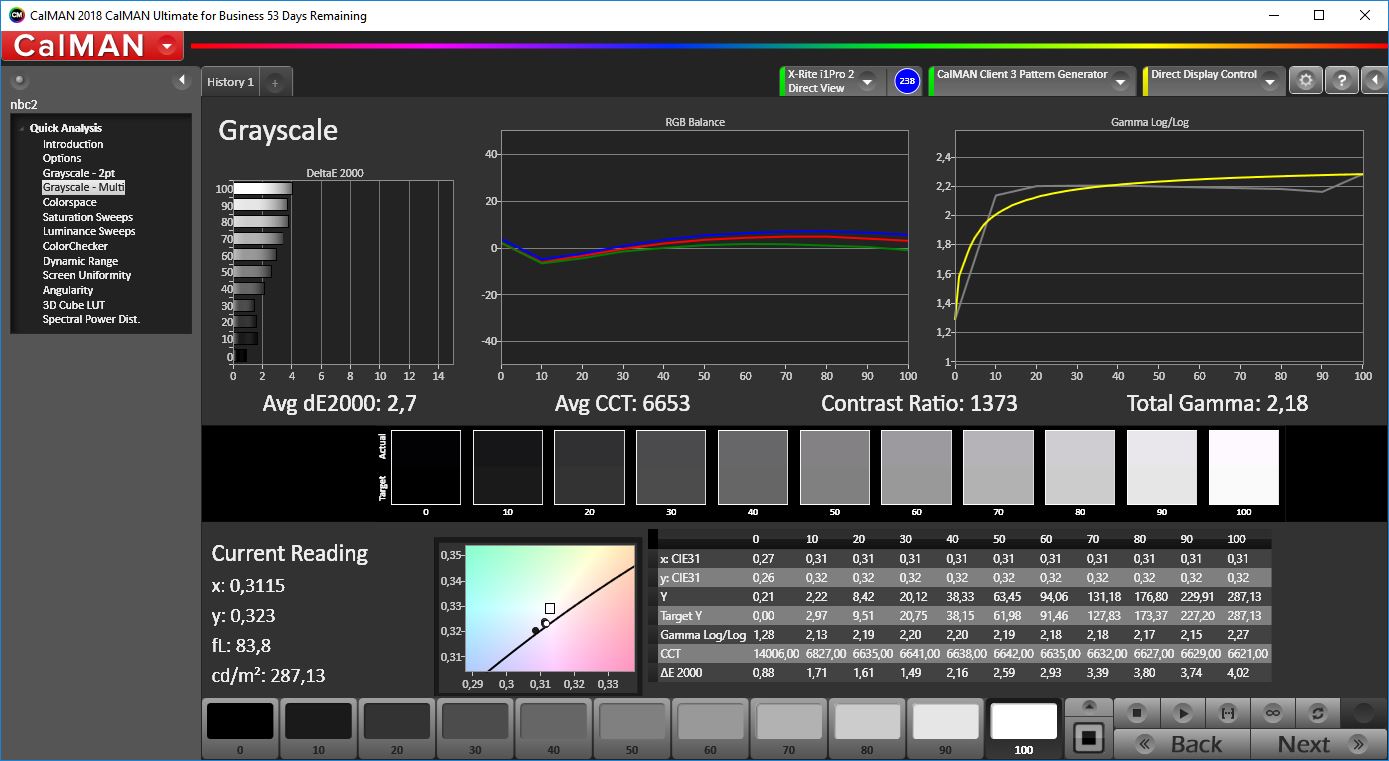 ΔE Greyscale Calman: 2.7 | ∀{0.09-98 Ø5}