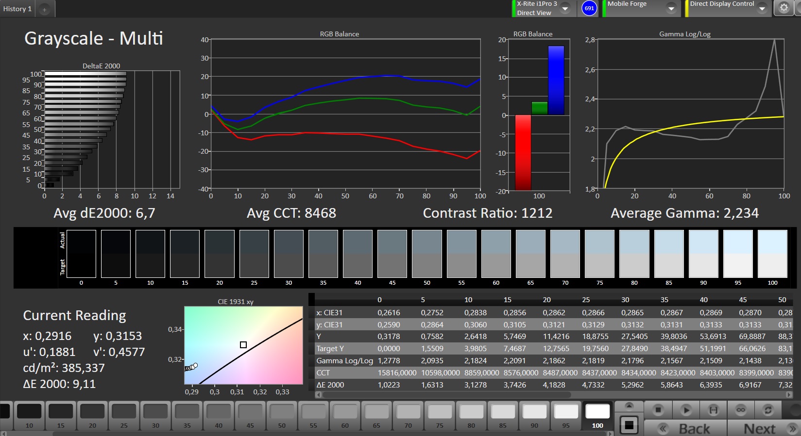 ΔE Greyscale Calman: 6.7 | ∀{0.09-98 Ø5}