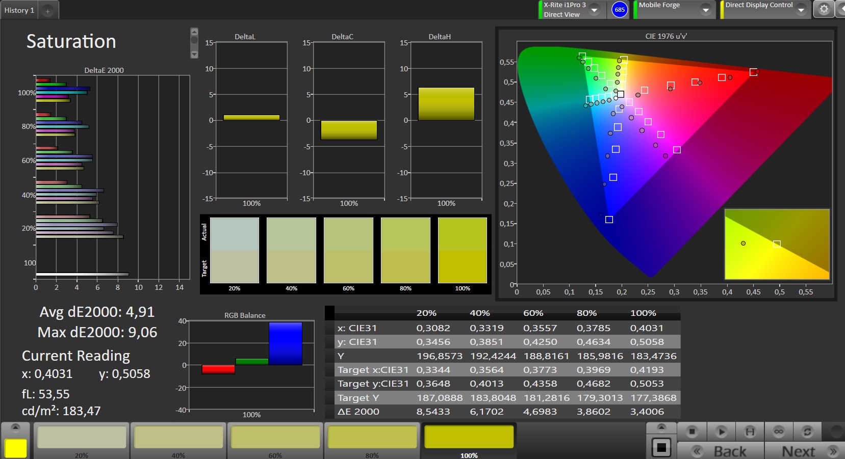 | Delta E Colorchecker * | 4.76 | 1.7 64% | 4.47 6% | 2.6 45% | 1.9 60% |