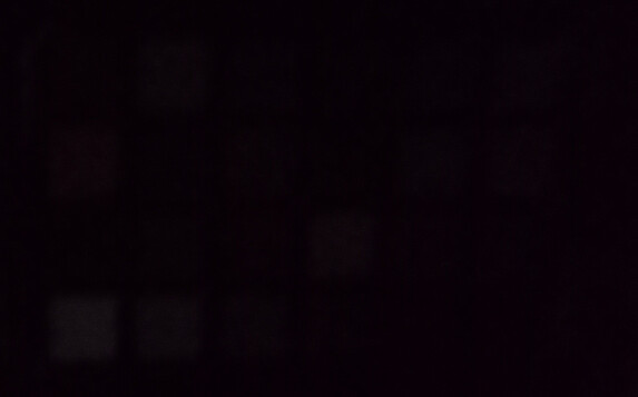 Bei 1 Lux Restlicht ist die Hauptkamera restlos überfordert und zeigt den Testchart nur sehr körnig und dunkel an. In Ansätzen lassen sich seine Elemente aber immerhin noch erkennen.
