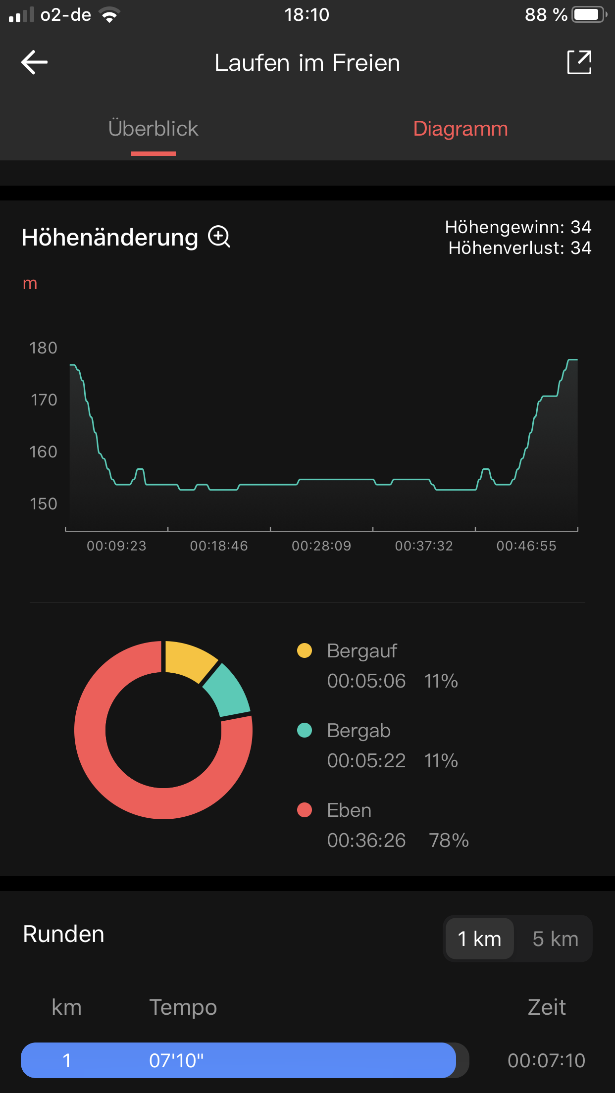 Das Training samt Streckenaufzeichnung kann auch im Nachhinein noch auf der Uhr angesehen werden. Mehr Details liefert die App, in der die Parameter auch grafisch miteinander verknüpft werden können.