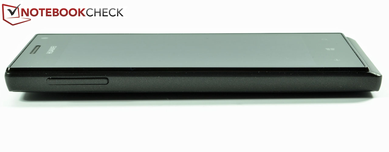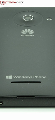 Das Gehäuse des Huawei Ascend W1 besteht aus matt-schwarzem Polycarbonat, das eine angenehm griffige Gummierung aufweist. Die Vorderseite wird vom gläsernen Display dominiert. Am unteren Rand beweist das Testgerät in puncto Design mit einem überstehenden Gehäuseteil Eigenständigkeit. Im Vergleich zu den Android Modellen ist die Formensprache des Testsamples deutlich kantiger, was aber die Haptik nicht übermäßig beeinträchtigt. Die Stabilität ist sehr gut, das stramm sitzende Backcover sowie das Displayglas lassen sich auch unter hohem Kraftaufwand nicht sichtbar eindrücken. Die Verarbeitung ist mit gleichmäßigen Spaltmaßen auf hohem Niveau.