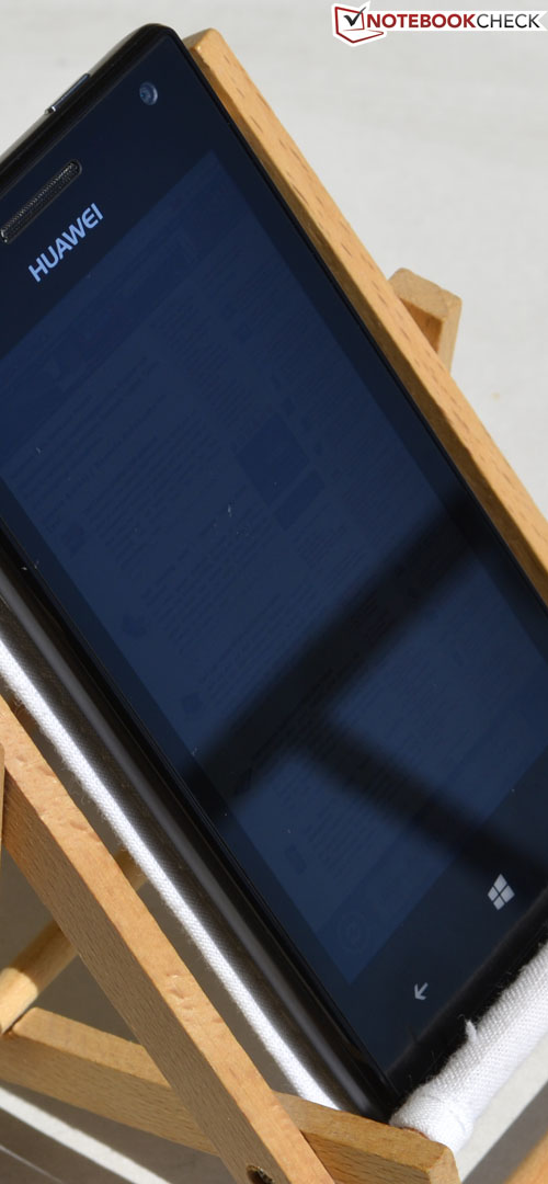 Die Glasoberfläche spiegelt zwar bei Lichteinfall naturgemäß stark, dennoch ermöglicht die Leuchtdichte von im Schnitt 332 cd/m² auch dann einen Außeneinsatz.
