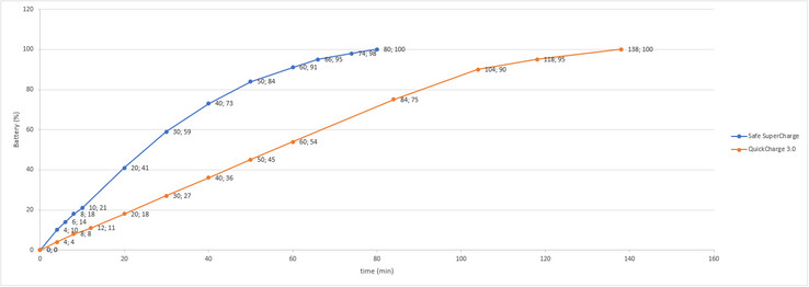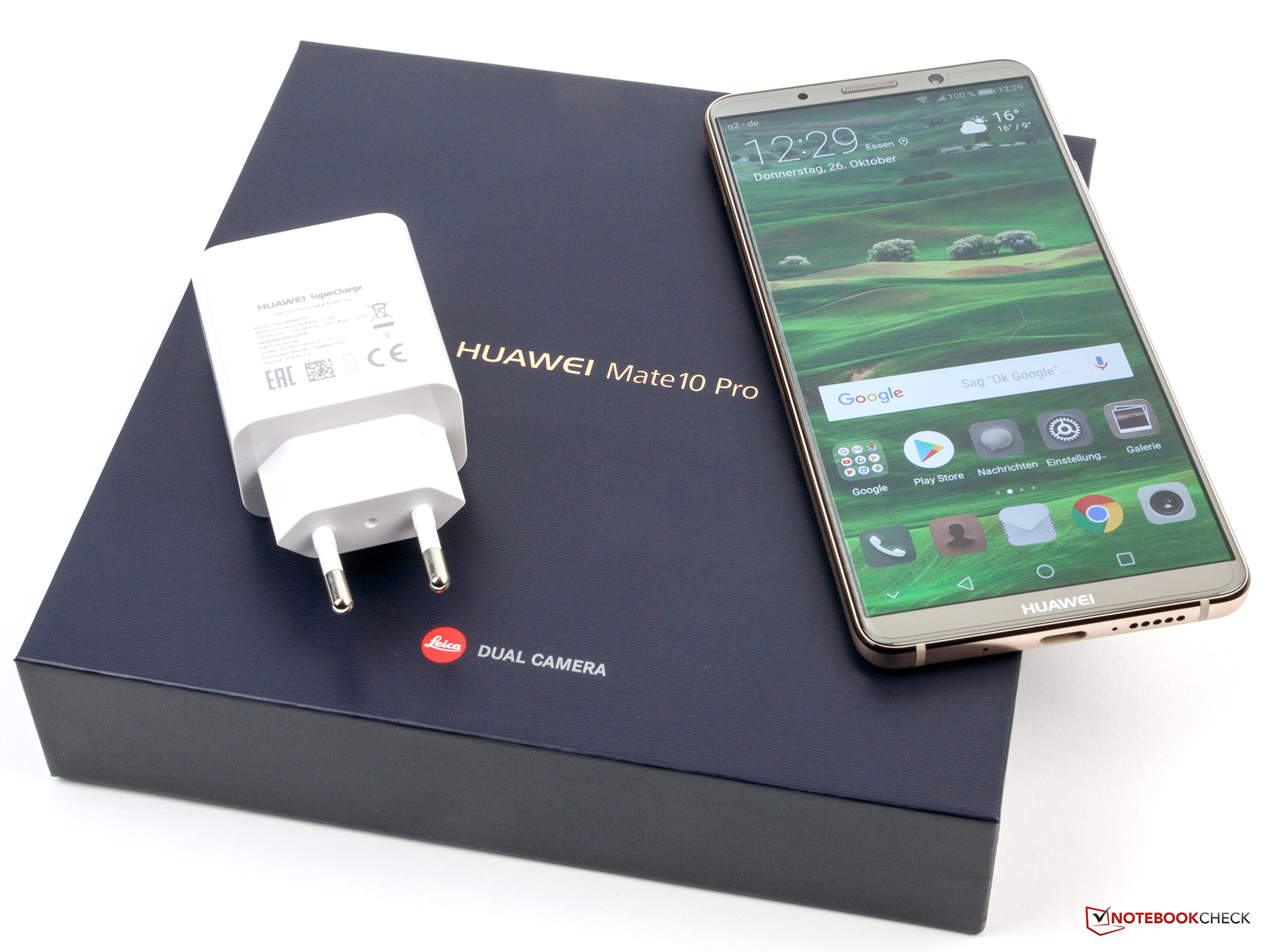 Huawei hat nach eigenen Angaben sein Schnellladeverfahren als erster Hersteller überhaupt vom TÜV Rheinland prüfen und zertifizieren lassen, um einen möglichst schnellen und sicheren Ladevorgang zu gewährleisten. Das Netzteil des Mate 10 Pro ist von den Daten her identisch mit denen des Mate 9 und bietet eine Nennleistung von bis zu 22,5 Watt (5 V, 2 A; 4,5 V, 5,0 A; 5 V, 4,5 A). Dennoch wird das Smartphone wesentlich schneller geladen und schafft eine vollständige Ladung in nur 80 Minuten. Dies ist jedoch nur mit dem mitgelieferten Netzteil möglich. Wer das eines Fremdherstellers nutzt, muss mit deutlich längeren Ladezeiten rechnen. So hat es mit einem QuickCharge-3-Netzteil (5,0 V, 2,5 A; 9,0 V, 1,7 A; 12 V, 1,25 A) erheblich länger gedauert. Die Leistungsaufnahme des mitgelieferten Netzteiles liegt bei 0,005 Watt und ist damit angenehm niedrig.