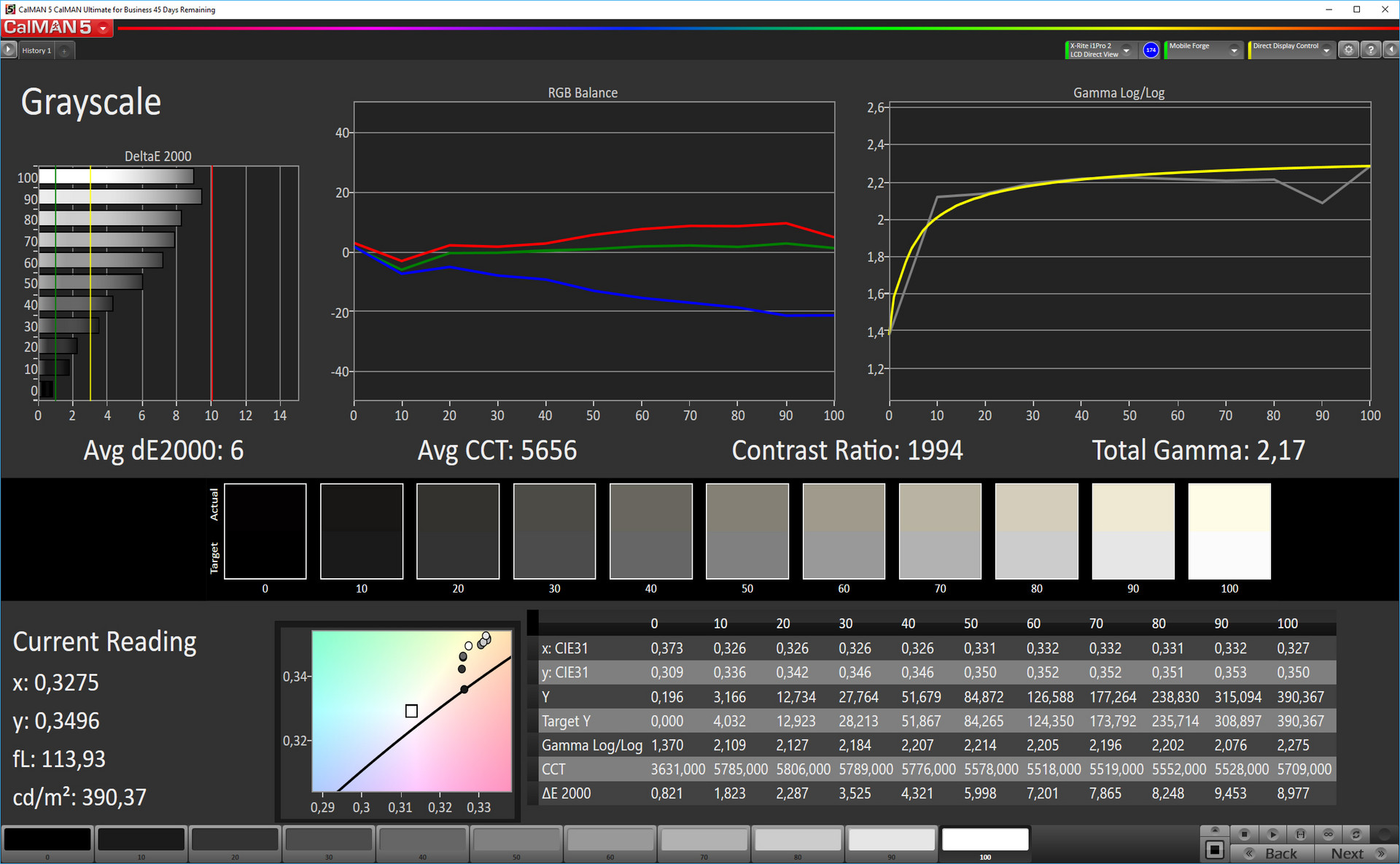 ΔE Greyscale Calman: 2.4 | ∀{0.09-98 Ø5}