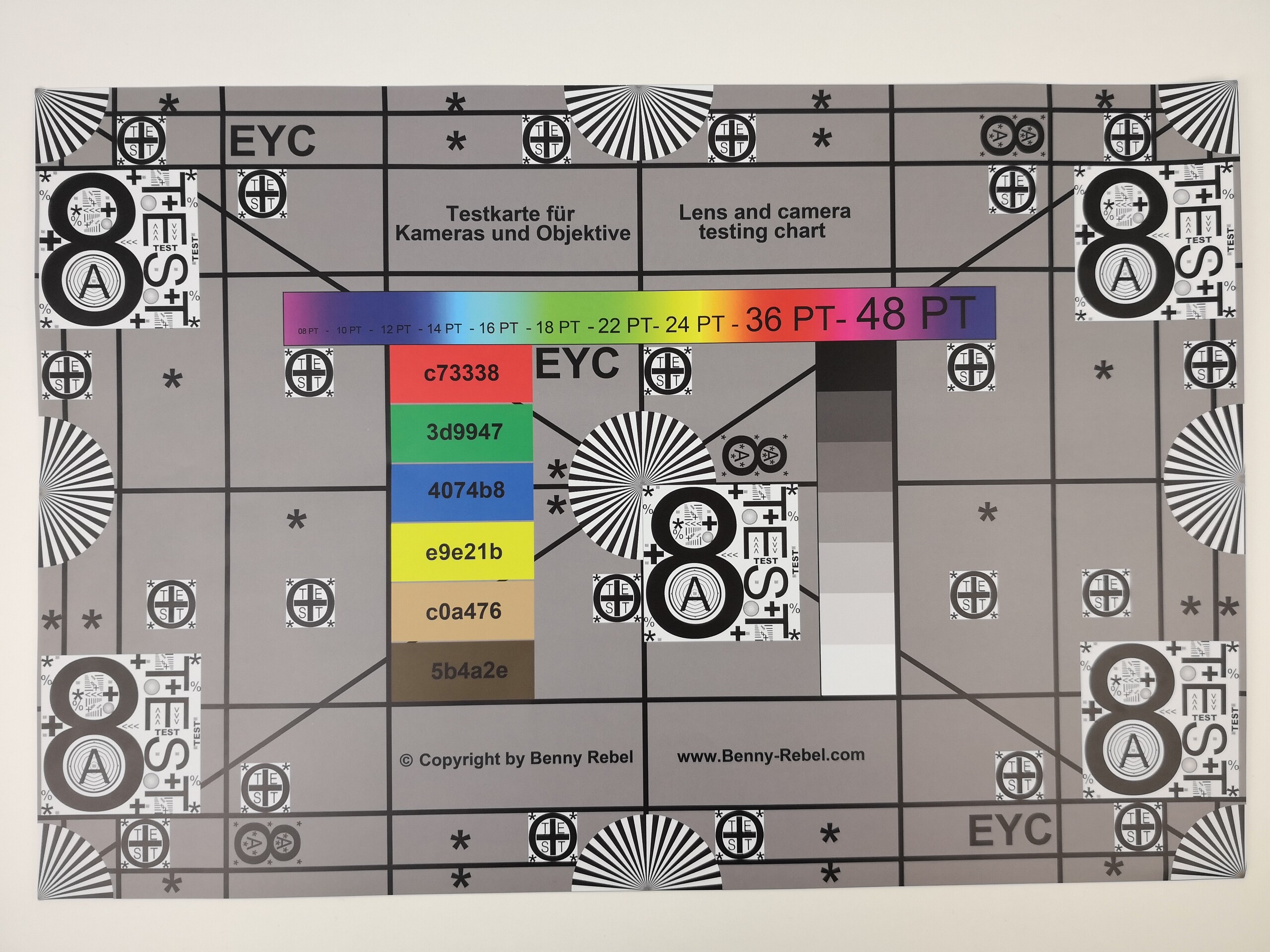 Bei unserem Testchart haben wir die verschiedenen Modi des Mate 10 Pro genauer betrachtet. Der höchste Schärfe- und Detailgrad wird mit dem Monochromsensor erzielt, welcher selbst in den Randbereichen noch eine enorm scharfe Abbildungsleistung besitzt. Das Kombinationsbild aus beiden Sensoren mit 20 MP sieht ebenfalls prima aus und zeigt sehr gute Farbverläufe und kaum Schwächen bei Textelementen auf dunklen Untergrund. Anders sieht dies bei der 12-MP-Version aus, bei welcher die einzelnen Zeichen leicht ausfransen und an den Rändern Unschärfen stärker sichtbar werden. Schlimmer geht es mit dem Hybridzoom, welcher nicht nur am Bildrand recht unscharf ist, sondern selbst in der Bildmitte Abbildungsfehler zeigt. Huawei hat in der Vergangenheit bereits gezeigt, dass dies besser geht. Da wird sicherlich noch mit dem einen oder anderen Update nachgebessert.