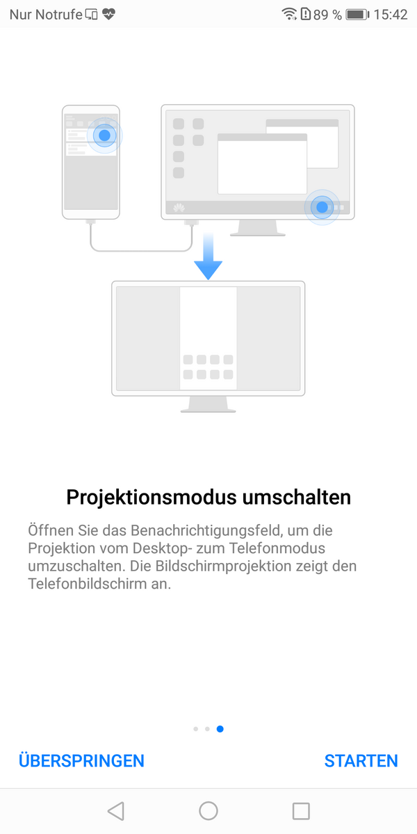 Huawei spendiert dem Mate 10 Pro einen Desktop-Modus, der genauso funktioniert wie Samsungs DeX, nur ist bei unserem Testgerät keine Dockingstation notwendig. Es genügt lediglich ein optionales USB-Type-C zu HDMI oder DisplayPort-Kabel. Wie beim Vertreter von Samsung ist die Auflösung am externen Bildschirm jedoch auf 1.920 x 1.080 Bildpunkte beschränkt. Der Desktop ist übersichtlich strukturiert und erlaubt müheloses Multitasking. Für die Steuerung kann das Smartphone als Touchpad genutzt werden und die Tastatur des Gerätes steht für Eingaben zur Verfügung. Alternativ können auch externe Eingabegeräte per Bluetooth mit dem Phablet verbunden werden, um den Komfort weiter zu erhöhen. Praktisch ist zudem, dass es möglich ist, das Mate 10 Pro während des Desktop-Modus‘ weiterhin als Smartphone zu nutzen.