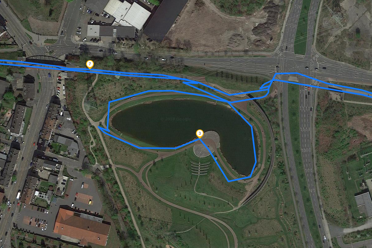 Auf unserer obligatorischen Fahrradtour kann das GPS im Mate 20 Lite unseren Streckenverlauf mit durchwachsenem Ergebnis aufzeichnen. Selbst gerade Wegabschnitte werden gelegentlich durch Sprünge zur Seite abgelenkt und Kurven lassen sich nur sehr ausladend nachvollziehen. Hinzu kommt, dass der Wegverlauf durch die hohe Toleranz häufig neben der eigentlichen Strecke angezeigt wird. Das Huawei-Smartphone ist daher nur für einfache Navigationsaufgaben zu empfehlen.