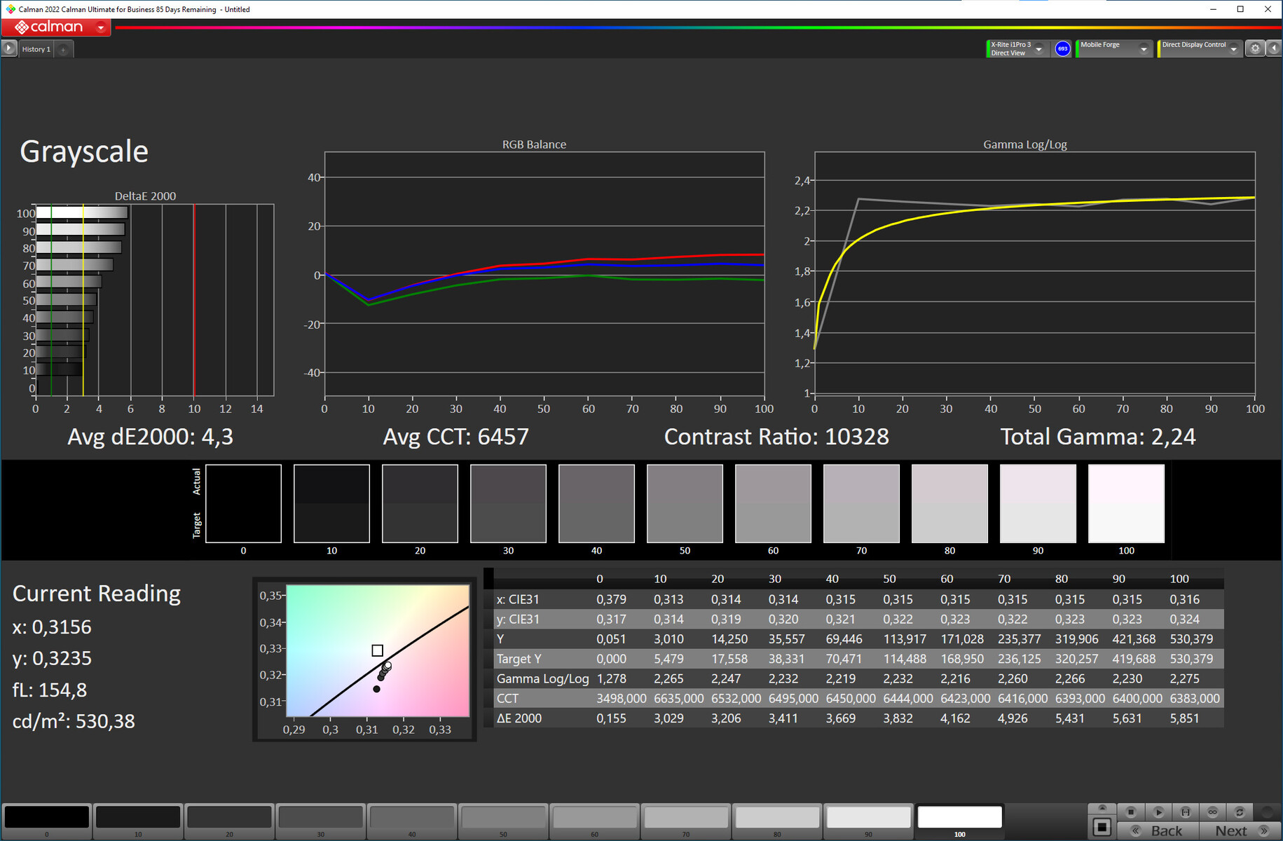 ΔE Greyscale Calman: 4.3 | ∀{0.09-98 Ø5}