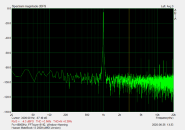 In den Messungen ist der Signal-Rausch-Abstand (SNR: 62,62 dBFS) jedoch nur befriedigend, während die harmonischen Verzerrungen sich auf einem guten Niveau bewegen. Die Klinke ist somit sicherlich nichts für Audiophile, reicht für Kommunikationsaufgaben oder einfache Medienwiedergabe jedoch vollkommen aus.
