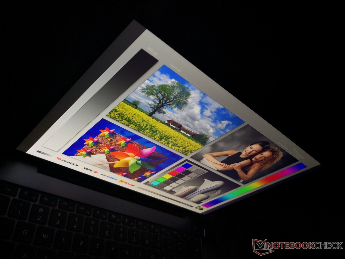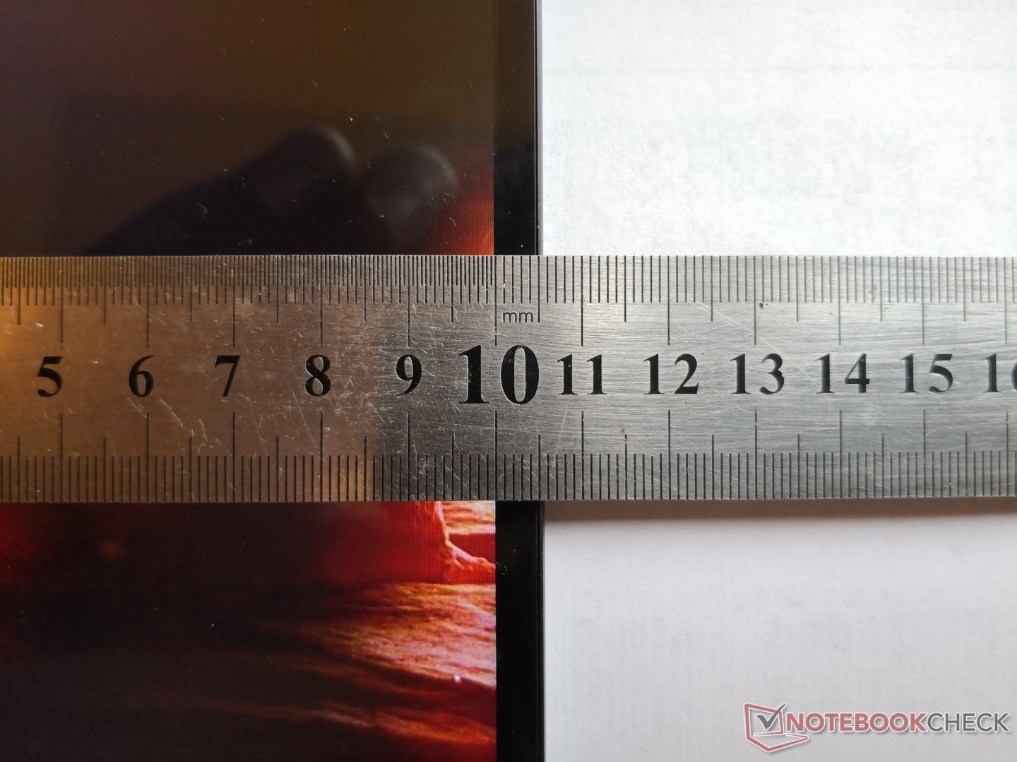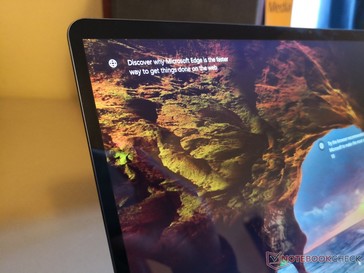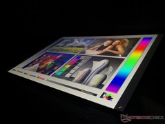Wie auf dem Foto zu sehen ist, zeigte das Display unseres Testgeräts leider ein sehr ungleichmäßiges und stark ausgeprägtes Backlight-Bleeding. Angesichts des vierstelligen Preises hat uns dies überrascht und wir können nur hoffen, dass es sich um einen Ausreißer handelt. Im Alltagsgebrauch war dieses Backlight-Bleeding nicht bemerkbar, bei der Videowiedergabe oder dem Systemstart dagegen sehr deutlich.