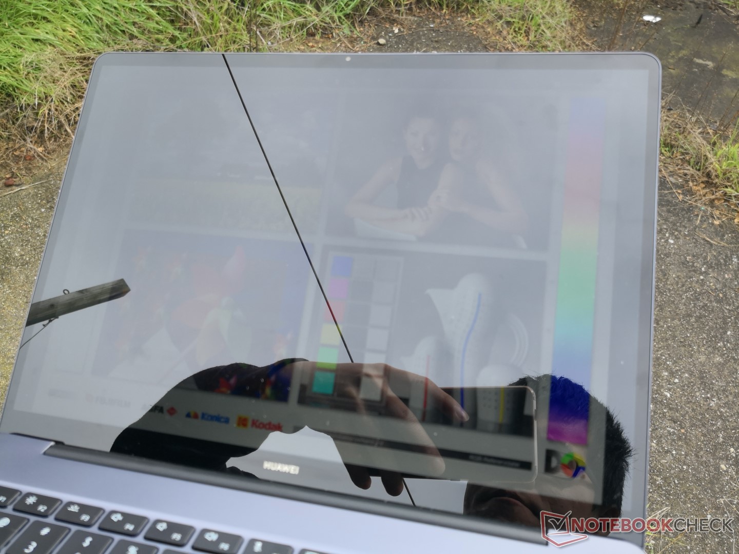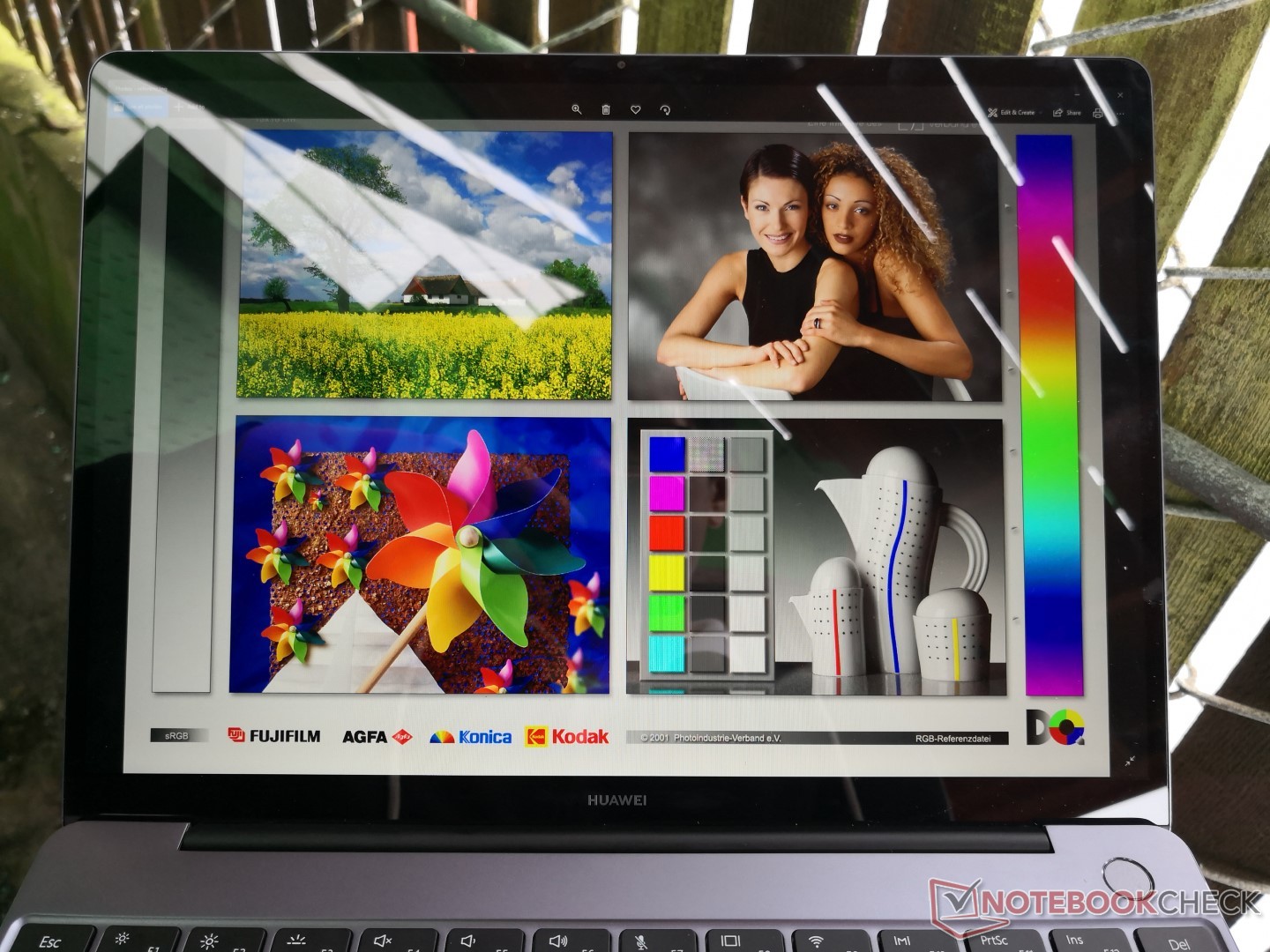 Im Außeneinsatz schlug sich unser Testkandidat aufgrund der schwächeren Hintergrundbeleuchtung schlechter als das MateBook X Pro. Direktes Sonnenlicht ist für das Display definitiv zu viel und die Reflexionen sind allgegenwärtig. Falls Nutzbarkeit im Freien ein wichtiges Kriterium ist, empfehlen wir das Samsung Notebook 9 oder HP EliteBook 1020 G2, da deren Displays fast doppelt so hell strahlen wie das des Huawei. Die Blickwinkel sind hervorragend und Farb- sowie Kontrastverschiebungen nur bei extremen Blickwinkeln erkennbar.