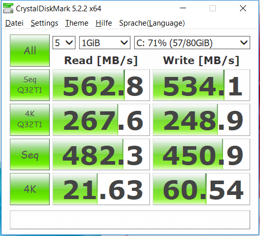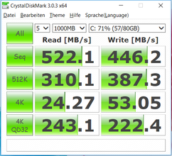| Huawei MateBook D 14 W50F i5-8250U, UHD Graphics 620, SanDisk SD9SN8W256G1027, IPS, 1920x1080, 14" | Lenovo Ideapad 720S-13IKB i5-8250U, UHD Graphics 620, Samsung PM961 MZVLW256HEHP, IPS, 1920x1080, 13.3" | HP EliteBook 745 G5 3UN74EA R7 2700U, Vega 10, Toshiba XG5 KXG50ZNV256G, IPS LED, 1920x1080, 14" | MSI Prestige PS42 8RB-059 i5-8550U, GeForce MX150, Toshiba KSG60ZMV512G, IPS, 1920x1080, 14" | Durchschnittliche Intel UHD Graphics 620 | Durchschnitt der Klasse Office | |