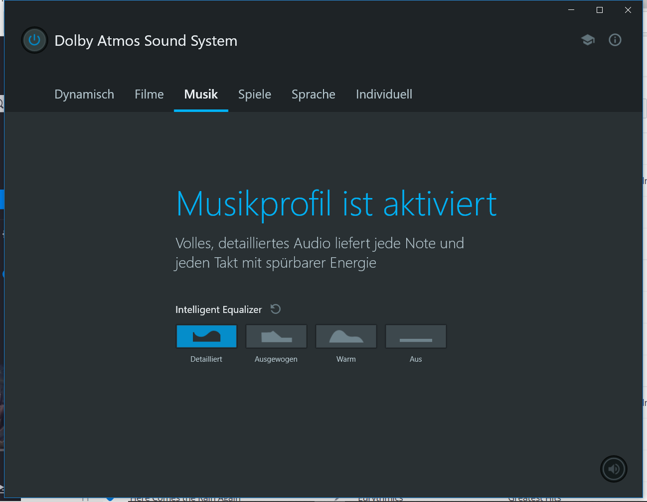 So kommt der nur leicht höhenlastige, insgesamt ausgewogene Klang zwar im voreingestellten Musik-Preset (siehe Screenshots unten) tendenziell dünn und aufgrund der erforderlichen Kompression auch etwas gequetscht daher, löst dafür aber gut auf und umschifft auch bei Maximallautstärke oft auftretende Probleme wie Verzerrungen, eine schrille Wiedergabe und Pegelschwankungen. Trotz der völligen Abwesenheit echter Bässe entfaltet sich eine annehmbare Dynamik und bei entsprechenden Titeln auch eine gewisse Räumlichkeit. Sprache in Filmen ist gut verständlich und klingt natürlich.