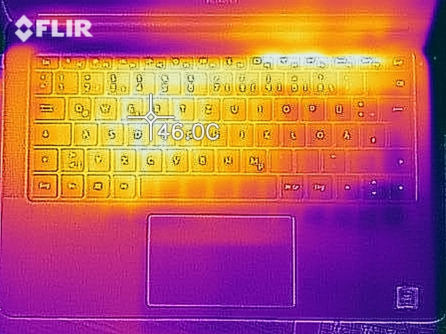(±) Die Handballen und der Touchpad-Bereich können sehr heiß werden mit maximal 38.3 °C.
