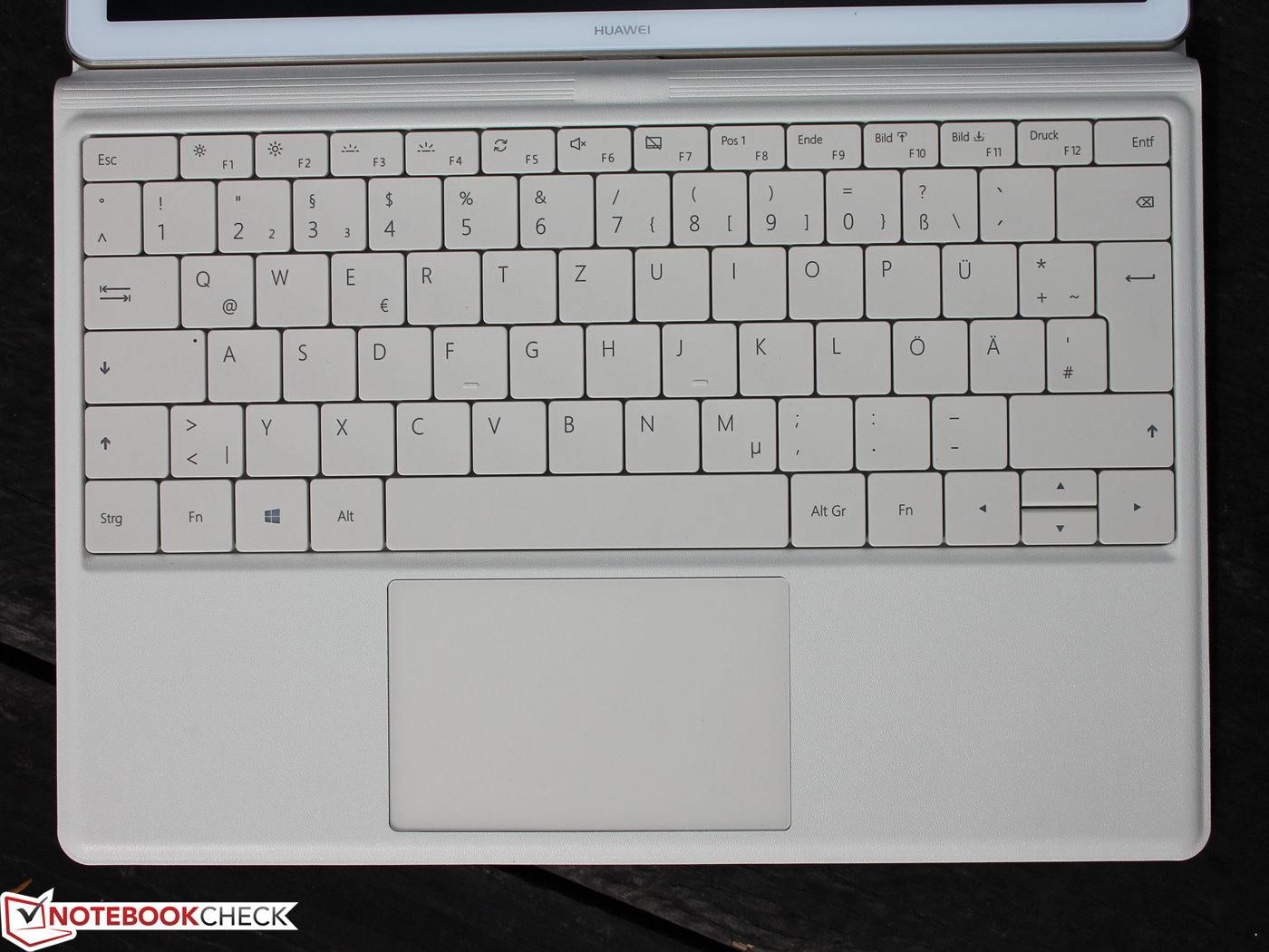 Die breiten Tasten haben zwar keine Zwischenräume, durch den relativ großen Hubweg und den sehr deutlichen Druckpunkt ist aber schnelles Tippen möglich. Leider wippt die Tastenfläche etwas, schuld ist der Zwischenraum zur Unterlage. Wer hier etwas unterlegt, erhält sogar einen festen Anschlag. Tendenziell gefällt uns die Eingabe des Spectre x2 12 besser, der Anschlag der Tastatur ist durch die Alu-Unterlage stabiler.