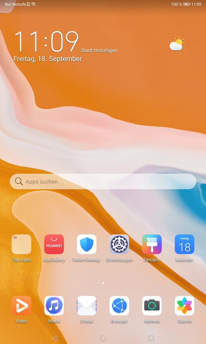 Das MatePad 10.4 verwendet Android 10 als Basis, dem Huawei seine Benutzeroberfläche EMUI 10.1 zur Seite stellt. EMUI unterscheidet sich nur in Details von einem Standard-Android, weshalb sich auch EMUI-Einsteiger sofort zurechtfinden sollten. Die Android-Sicherheitspatches waren zum Testzeitpunkt Mitte September auf dem Stand vom 01. August 2020 und damit noch recht aktuell.