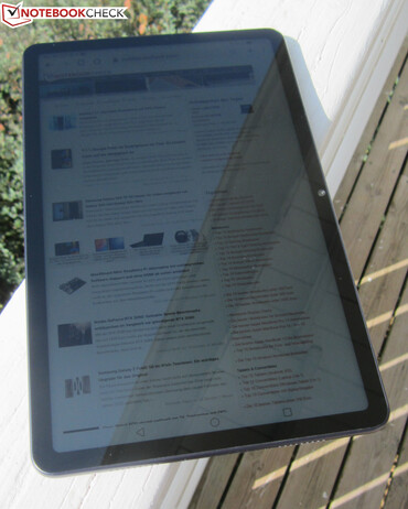 Durch seine hohe Leuchtkraft qualifiziert sich das MatePad 10.4 locker für den Außeneinsatz. Aufgrund des stark spiegelnden Displays ist die Lesbarkeit natürlich an schattigeren Plätzchen am besten. Dennoch lassen sich Inhalte auch bei direkter Sonneneinstrahlung noch relativ gut erkennen.