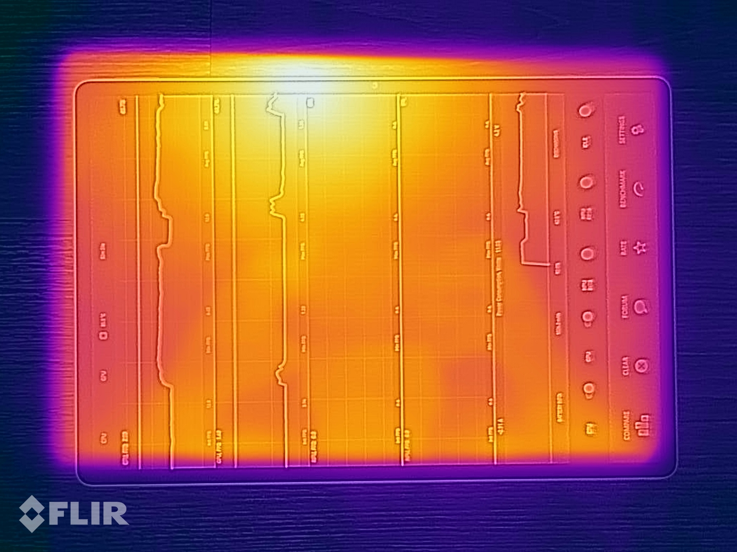 Der Oberflächentemperaturen erreichen selbst unter Last nur stellenweise Werte jenseits der 40 °C und selbst dann gelingt es dem SoC seine Leistung konstant abzurufen.