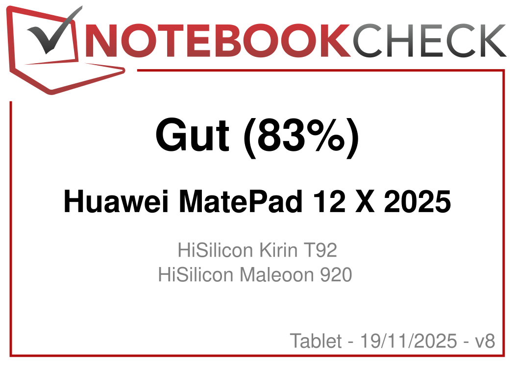 | Huawei MatePad 12 X 2025 HiSilicon Kirin T92 ⎘ HiSilicon Maleoon 920 ⎘ 12 GB RAM, 256 GB | Amazon: Listenpreis: 649€ | 555 g | 256 GB UFS 4.0 Flash | 12.00" 2800x1840 279 PPI LCD | |