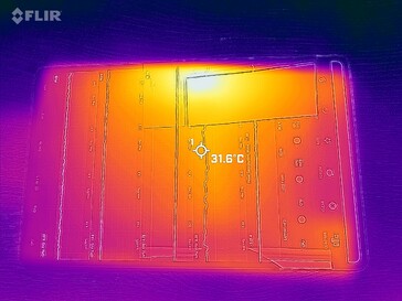 Die maximale Erwärmung auf 43,8 °C unter langer Last ist lokal stark begrenzt. Ansonsten erwärmt sich das Tablet kaum spürbar.