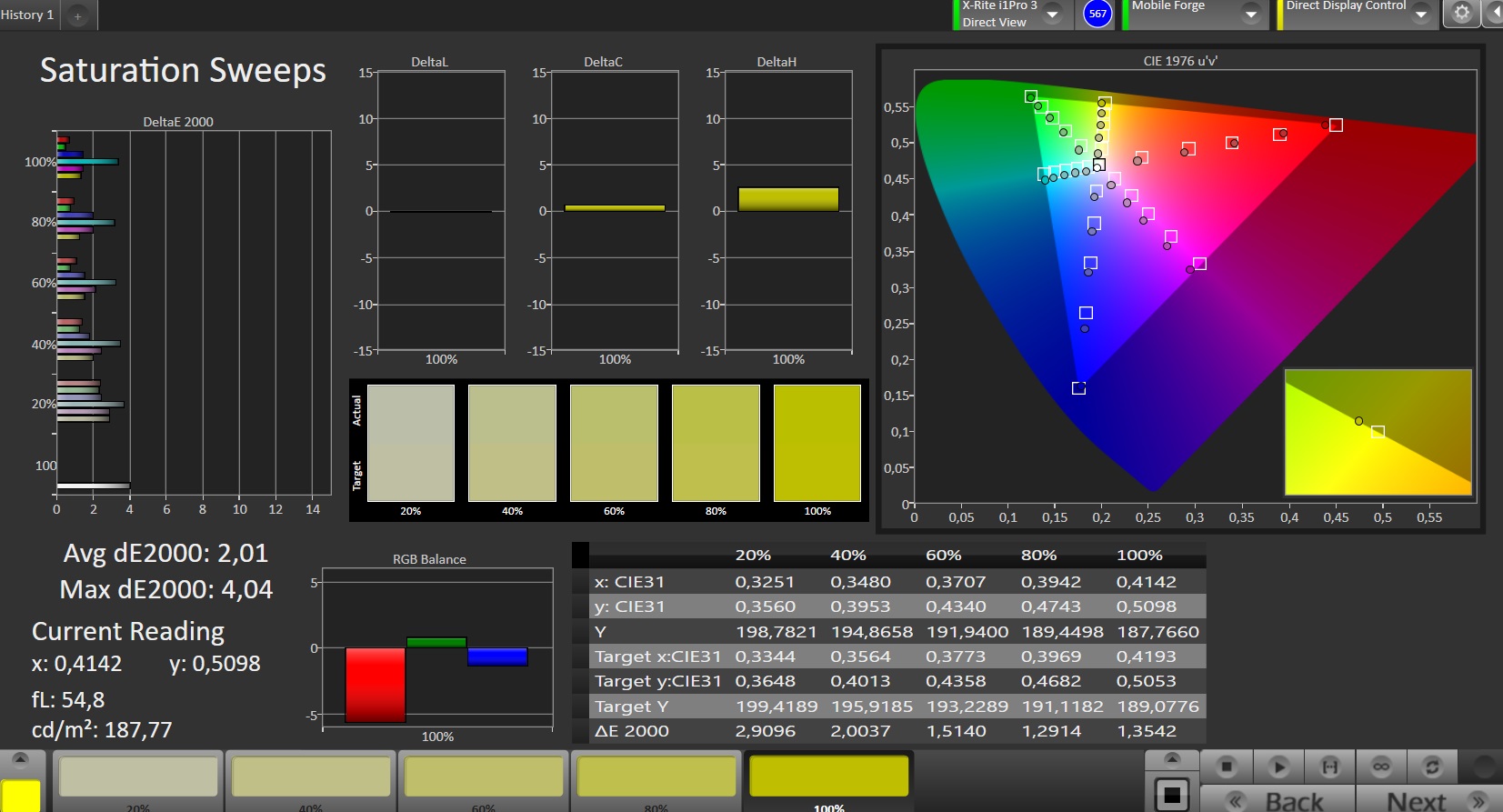 | Delta E Colorchecker * | 2.17 | 1.8 17% | 3.53 -63% | 6.29 -190% | 6.9 -218% |